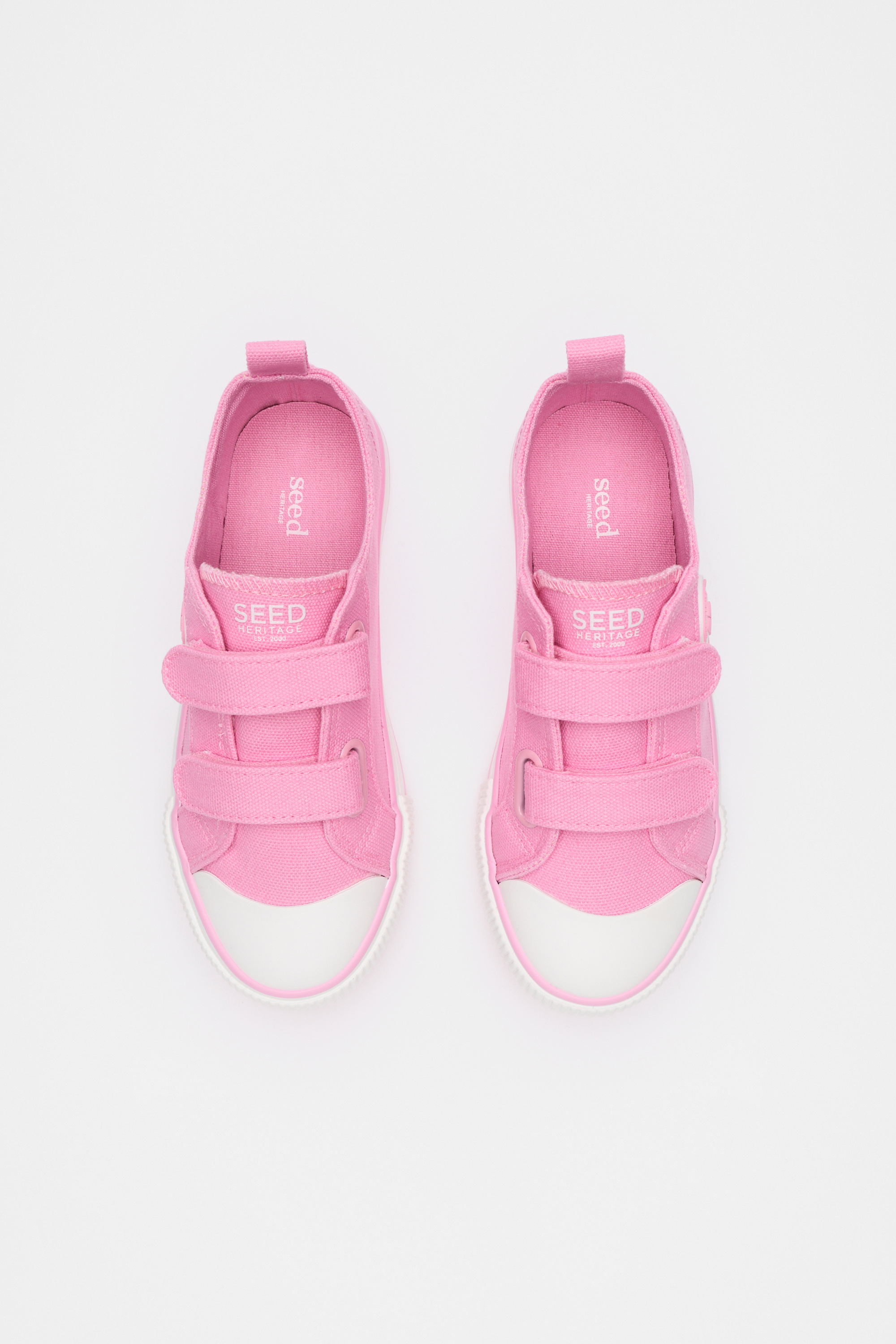 Ultra-cool and ready for every day, these sneakers are a simple design. With a fabric upper and rubber sole, they close with two hook-and-loop tabs across the top, and have a pull tab at the back for easy wear.