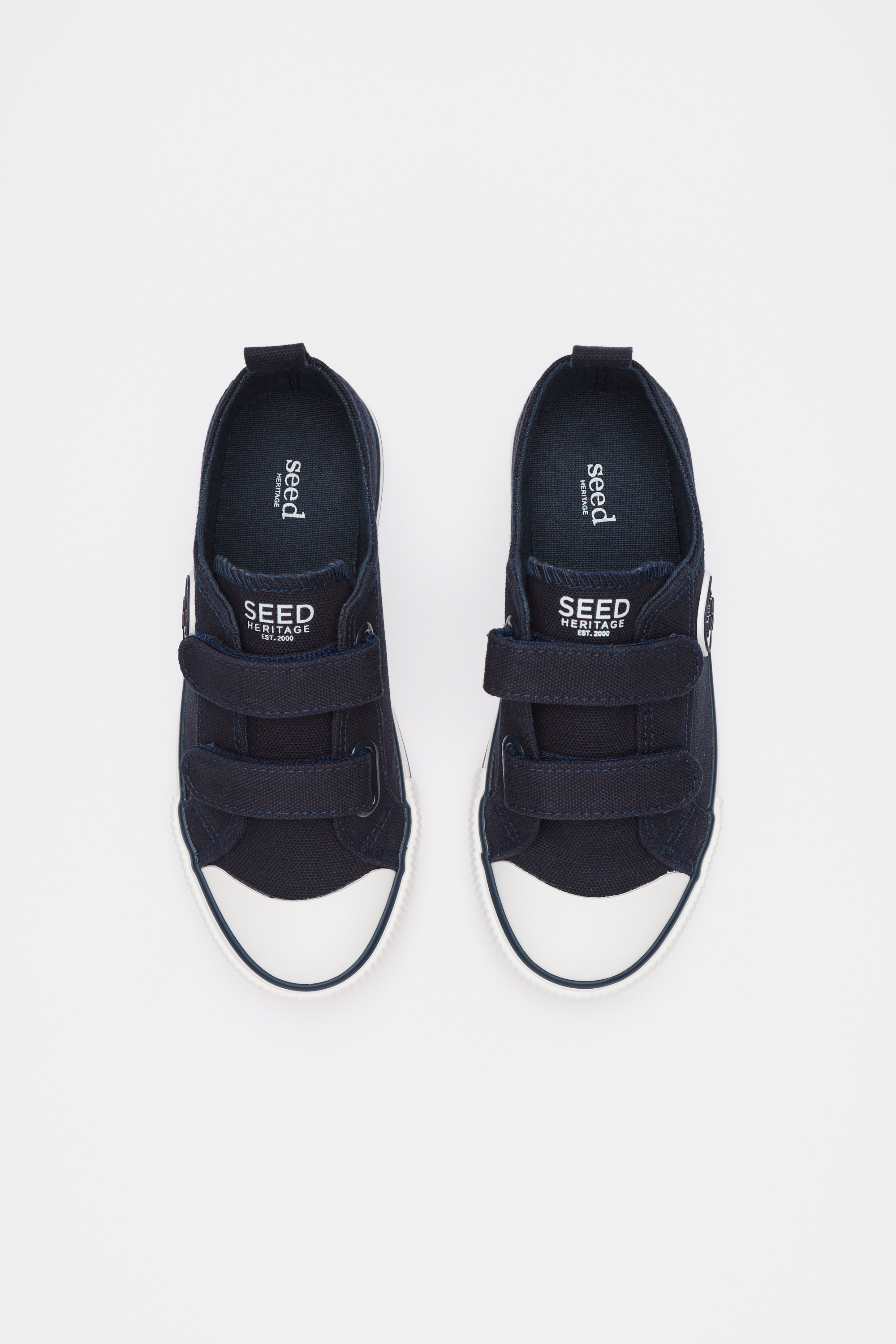 Ultra-cool and ready for every day, these sneakers are a simple design. With a fabric upper and rubber sole, they close with two hook-and-loop tabs across the top, and have a pull tab at the back for easy wear.