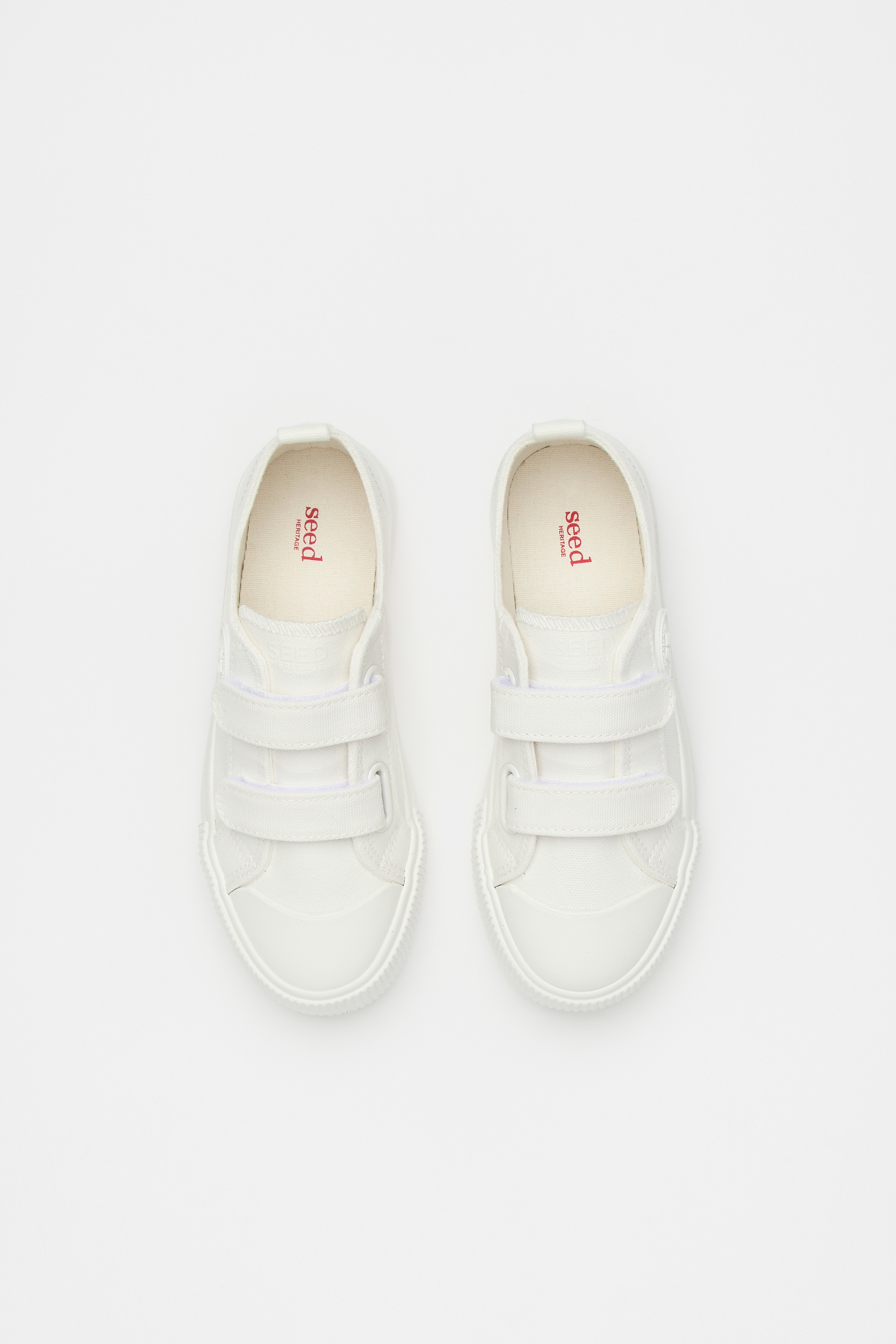 Ultra-cool and ready for every day, these sneakers are a simple design. With a fabric upper and rubber sole, they close with two hook-and-loop tabs across the top, and have a pull tab at the back for easy wear.