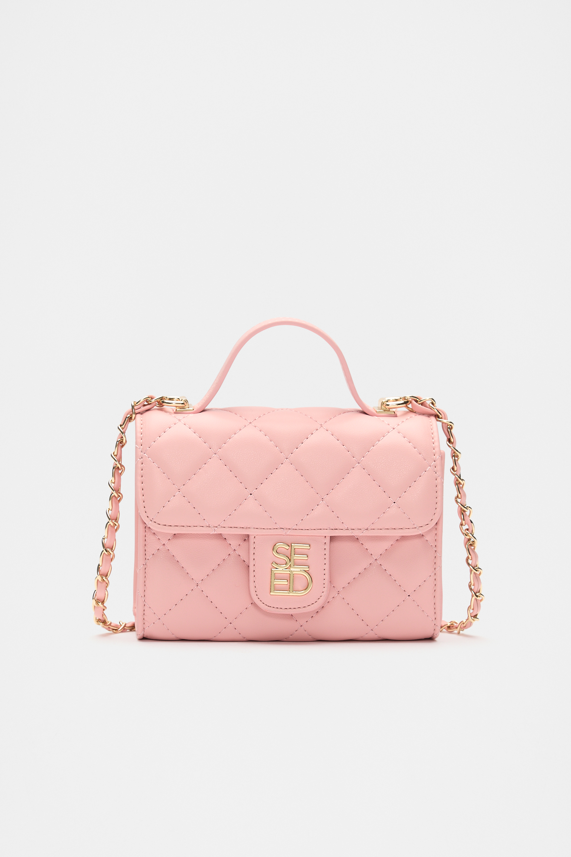 Sweet and stylish, this quilted bag is perfect for her special occasions. It features a mini top handle, a quilted design and a metallic gold Seed Heritage logo.