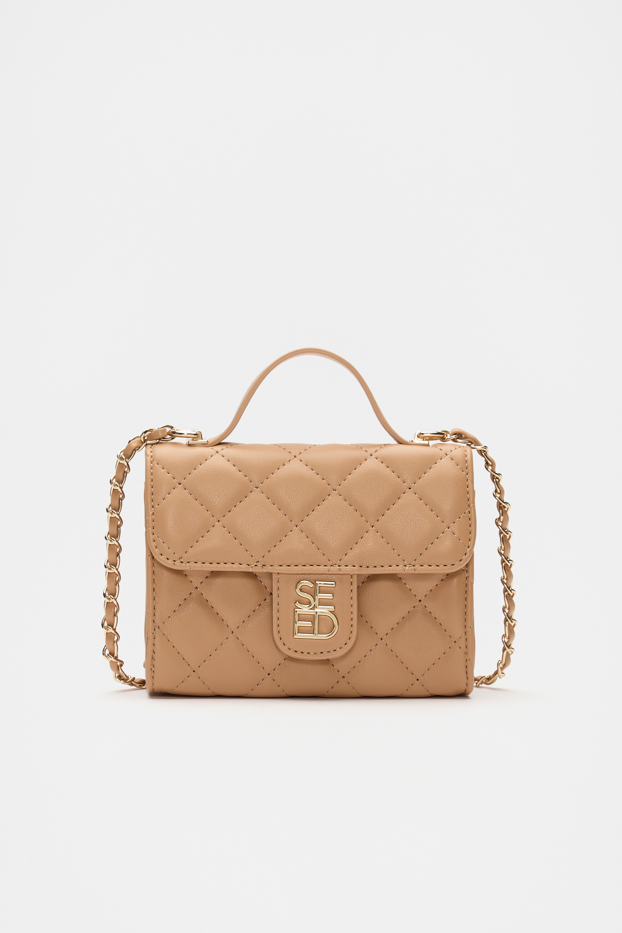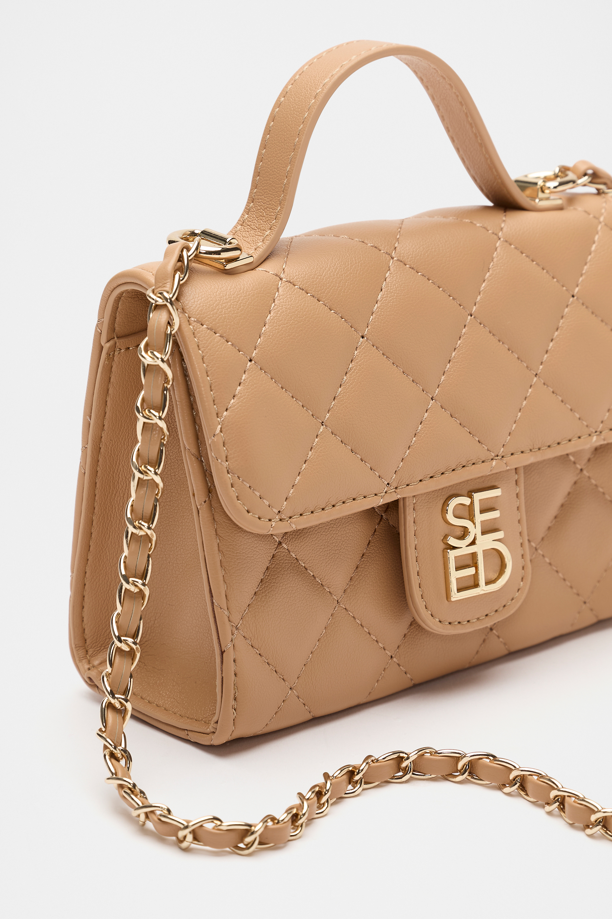 Sweet and stylish, this quilted bag is perfect for her special occasions. It features a mini top handle, a quilted design and a metallic gold Seed Heritage logo.
