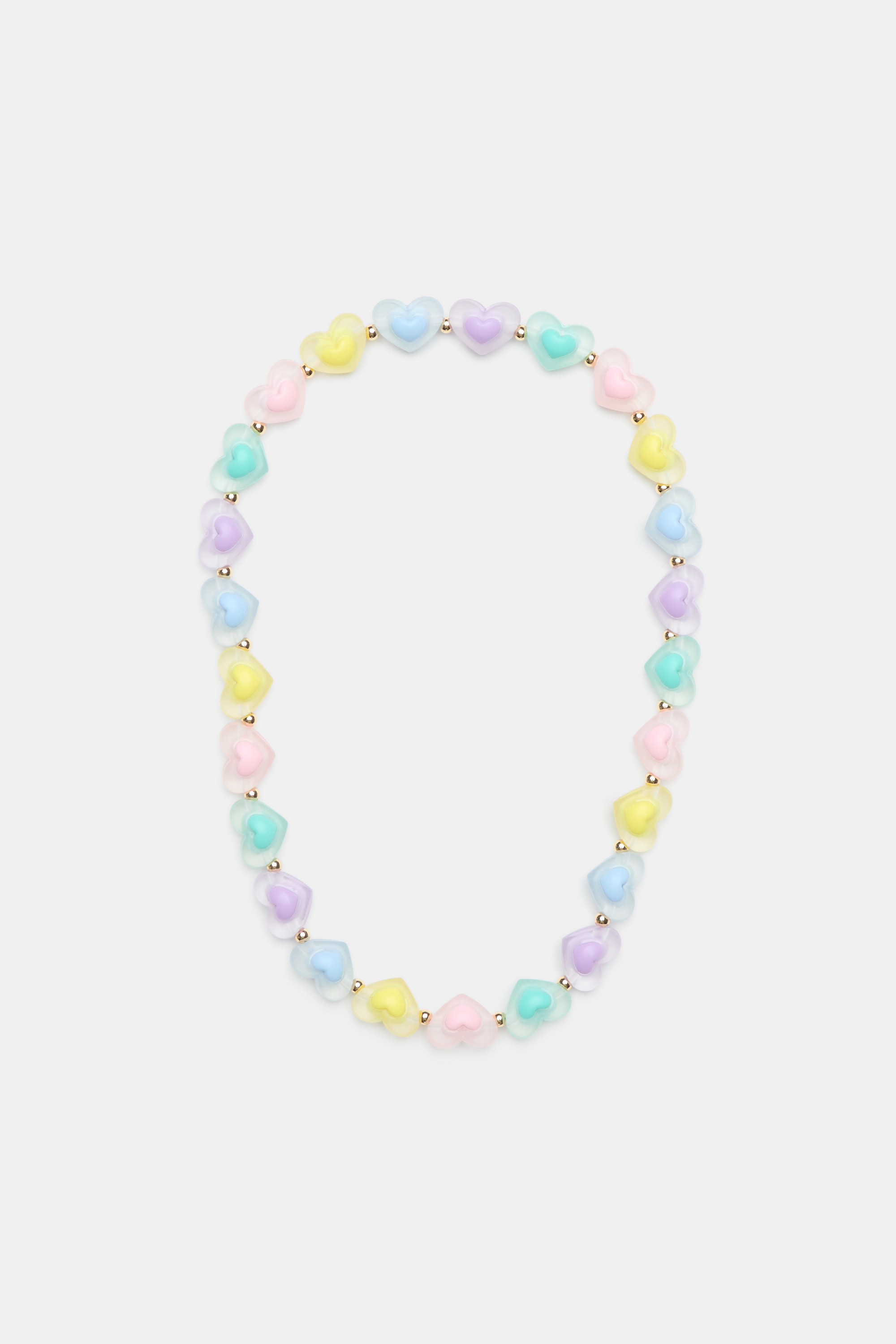 Colourful and fun, this elastic bracelet features rainbow heart-shaped beads. Pair with the matching necklace for the cutest matching set, or for the perfect gift. This product is not a toy and is not suitable for children three years and under.