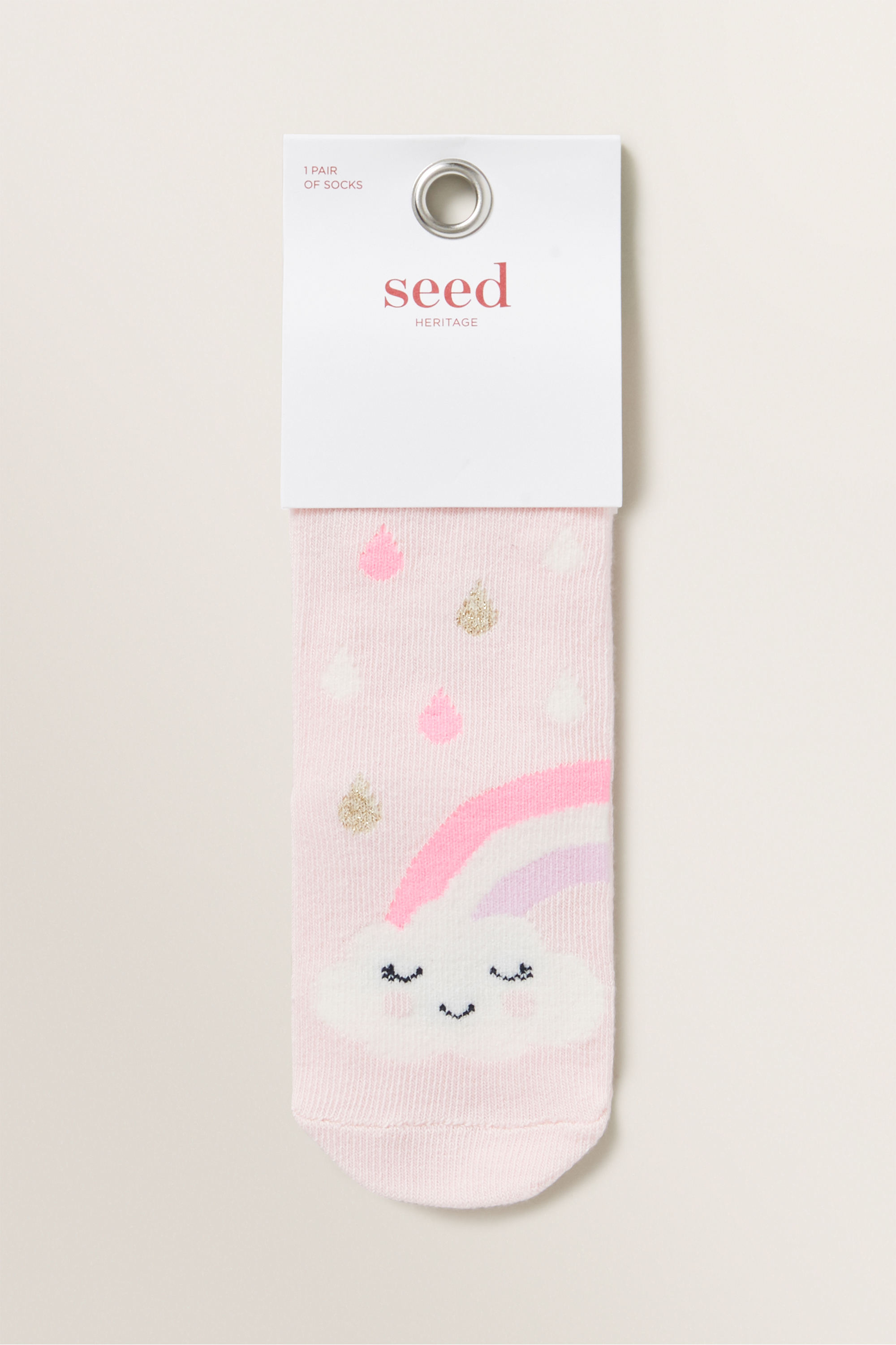 Your little one will love to navigate the world, wearing these Rainbow Sun Socks. Featuring a super-soft knit, these socks are detailed with a sunny motif. For care instructions, check the label inside of the garment.