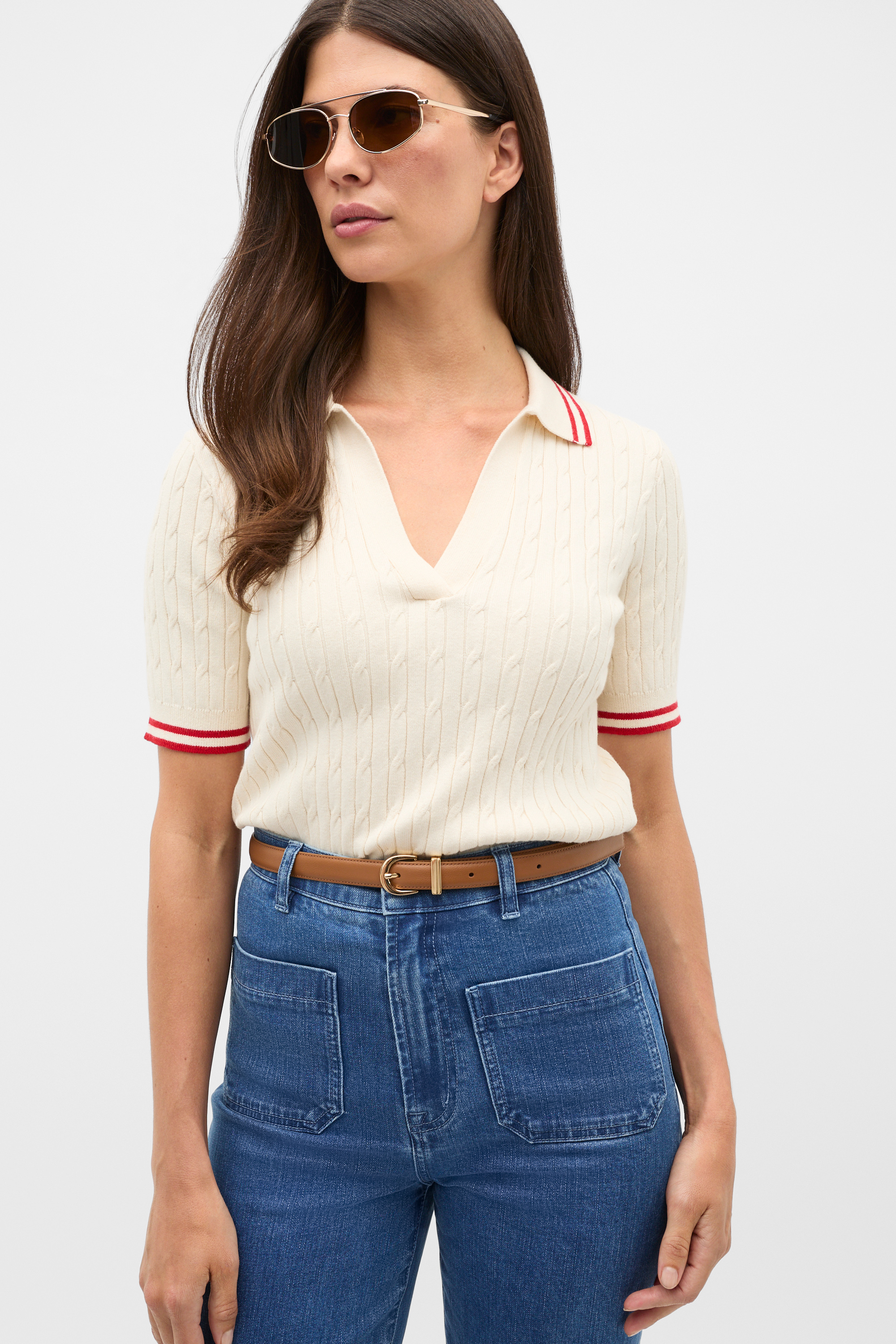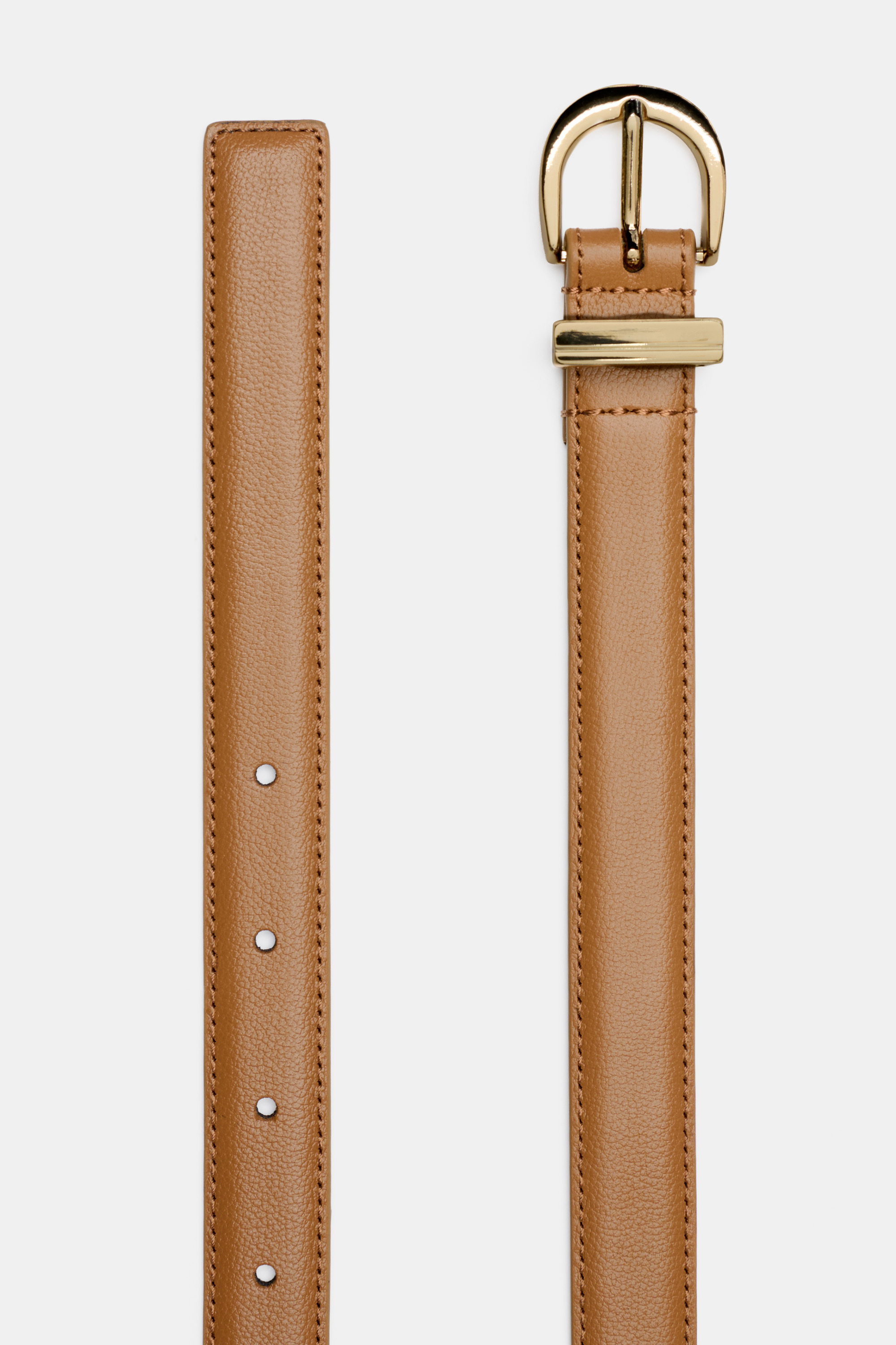 Elegant with a narrow profile, this belt is a chic addition to your wardrobe. Crafted in premium leather, it's detailed with a mock-croc debossed effect and features soft gold hardware with a high shine finish.