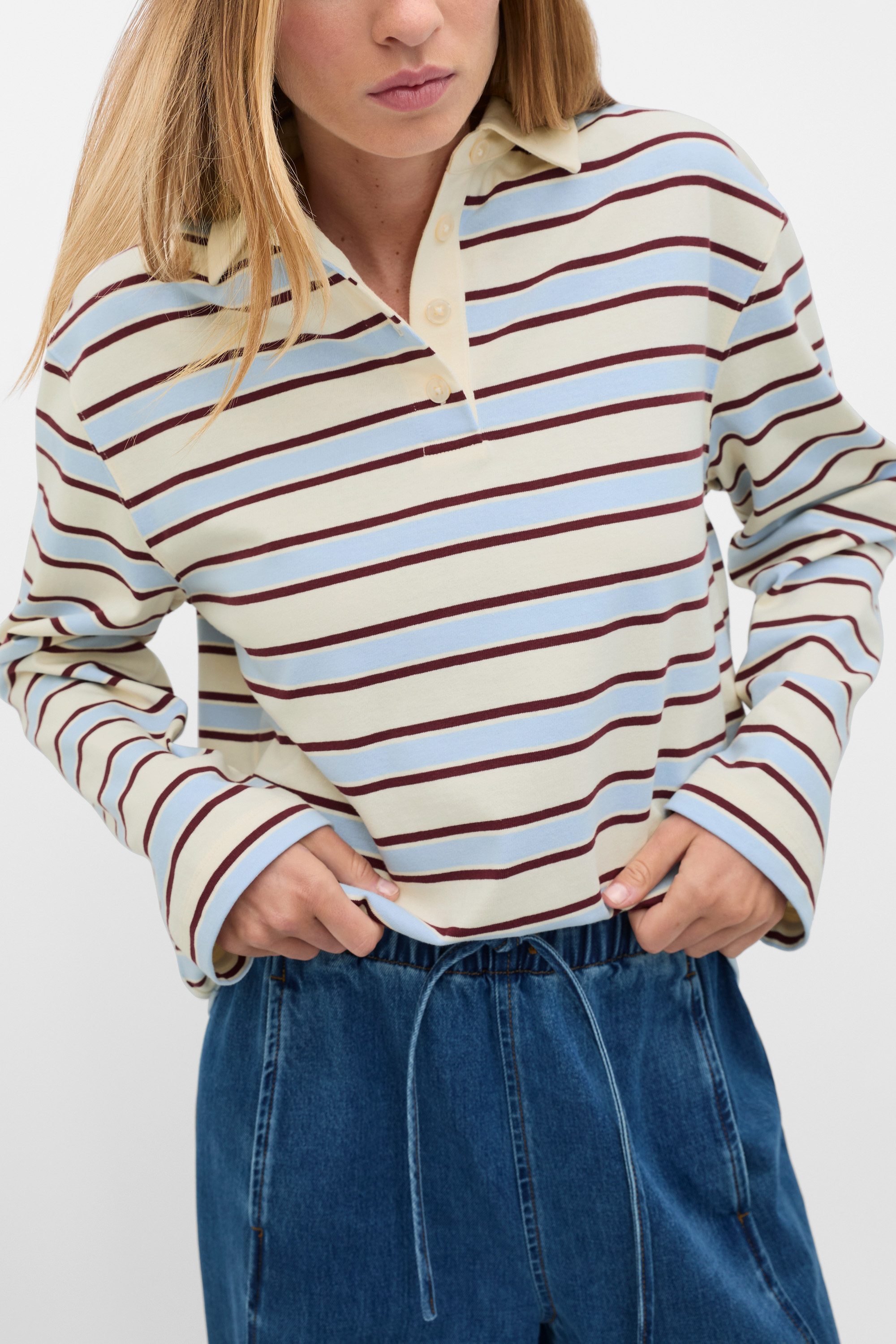 Relaxed Cotton Rugby Polo Top  Arctic Blue Stripe  hi-res Relaxed Cotton Rugby Polo Top  Arctic Blue Stripe  hi-res Relaxed Cotton Rugby Polo Top  Arctic Blue Stripe  hi-res