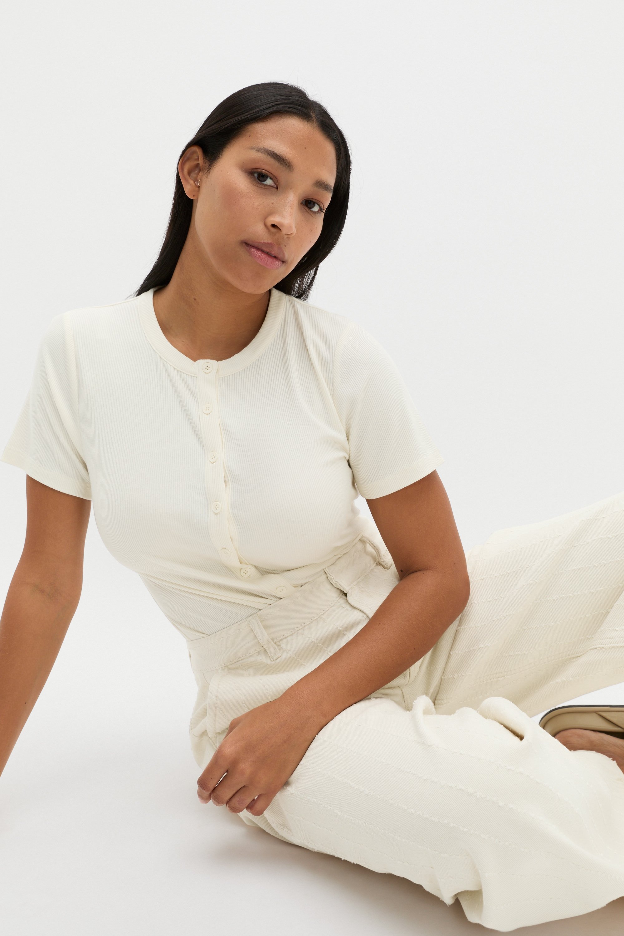 Rib Button Through Top  Buttercream  hi-res