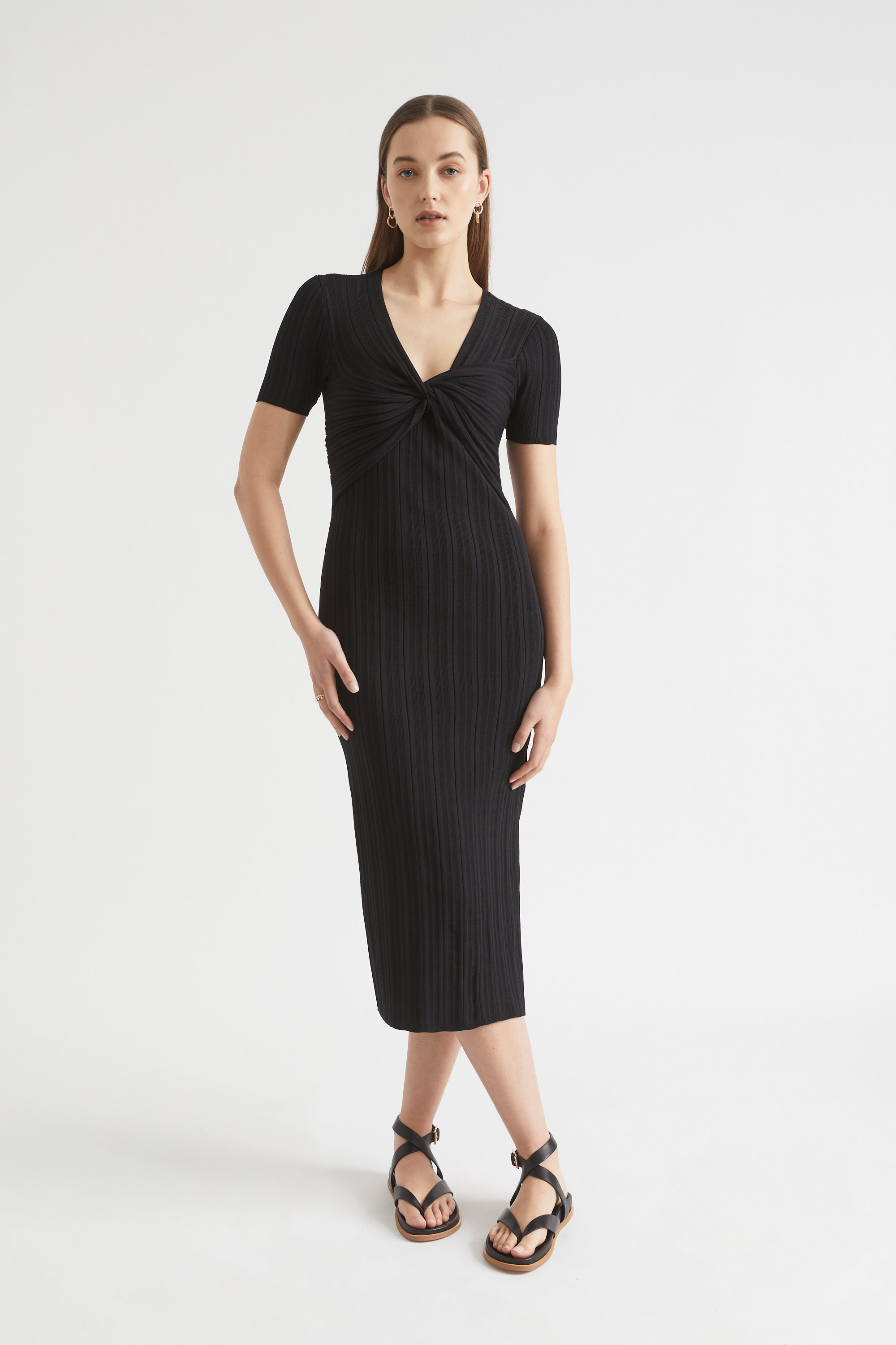 Rib Knit Twist Front Midi Dress  Black  hi-res Rib Knit Twist Front Midi Dress  Black  hi-res Rib Knit Twist Front Midi Dress  Black  hi-res Rib Knit Twist Front Midi Dress  Black  hi-res