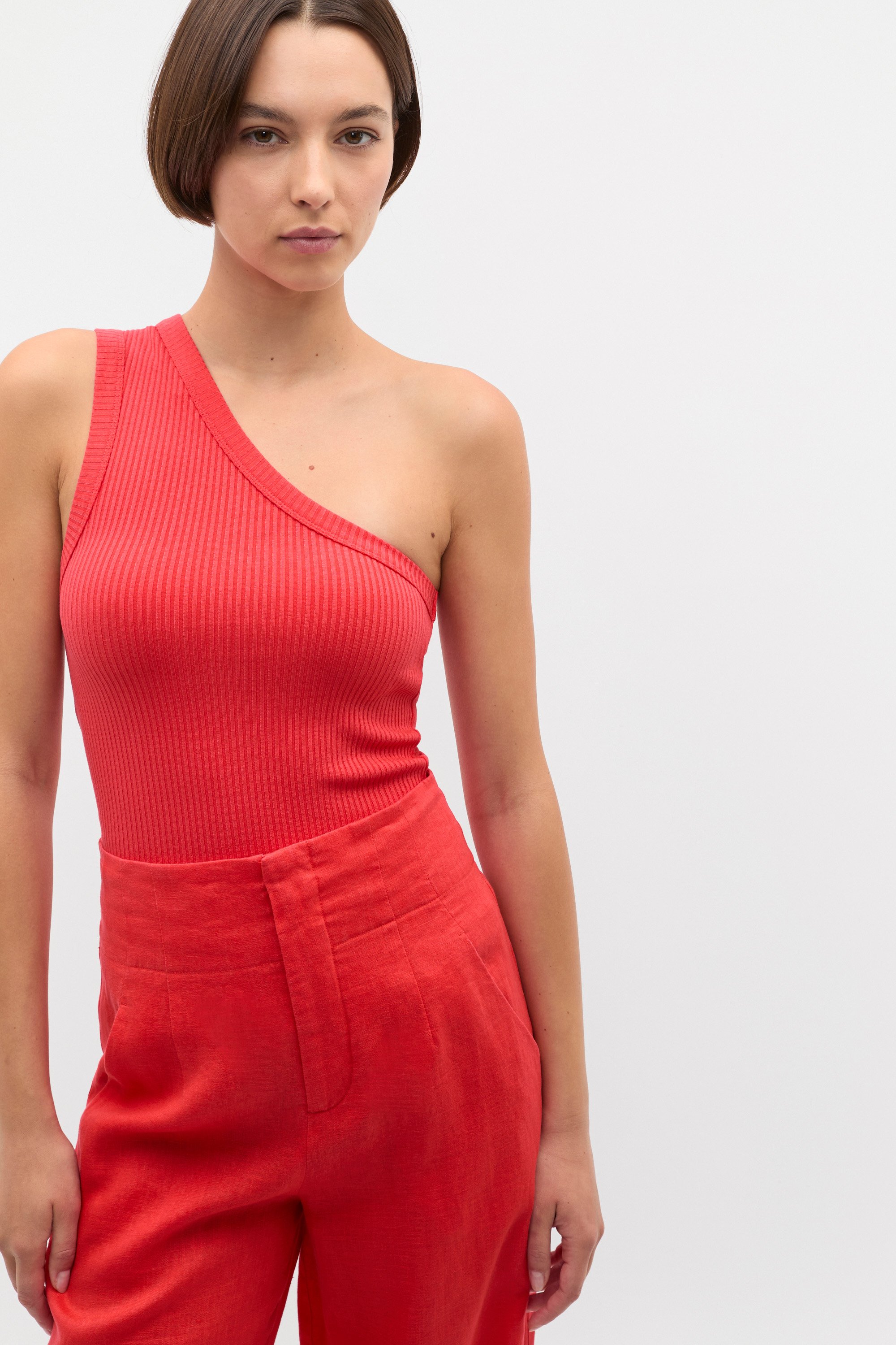 This tank is a premium essential for your everyday style. Crafted in a comfortable stretch blend, it features a one shoulder design and a neat fit through the body. This product contains TENCEL™ Lyocell fibres. The wood used as raw material for all TENCEL™ Lyocell fibres is sourced from certified (FSC® or PEFC certification*) or controlled wood sources. *FSC® (FSC-C041246) or PEFC (PEFC/06-33-92) certification. TENCEL™ is a trademark of Lenzing AG.