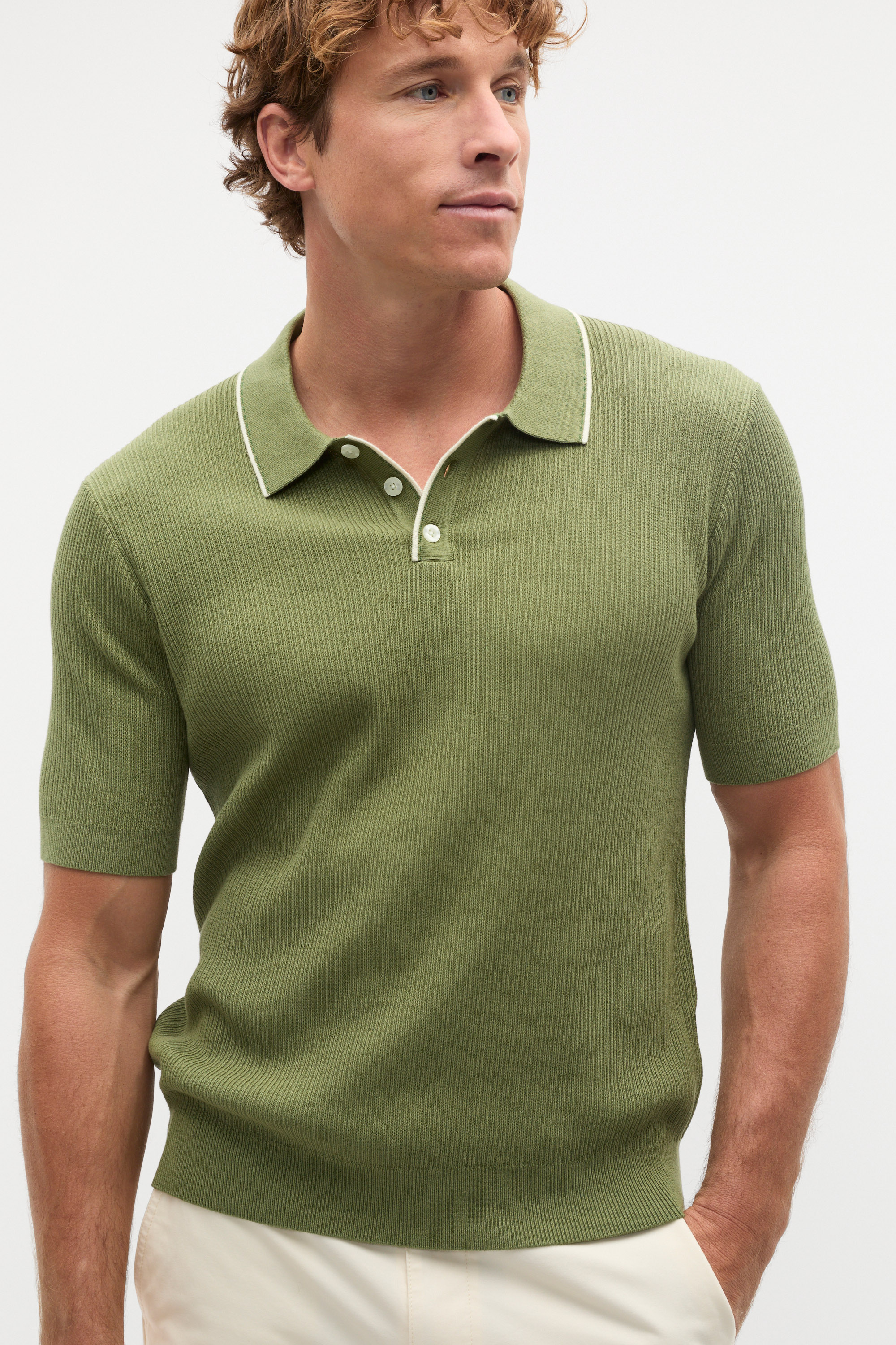 An elevated option for his everyday style, this polo is one he'll wear on repeat. Crafted in premium cotton, it features a button collar with contrast tipping, short sleeves and a ribbed finish.