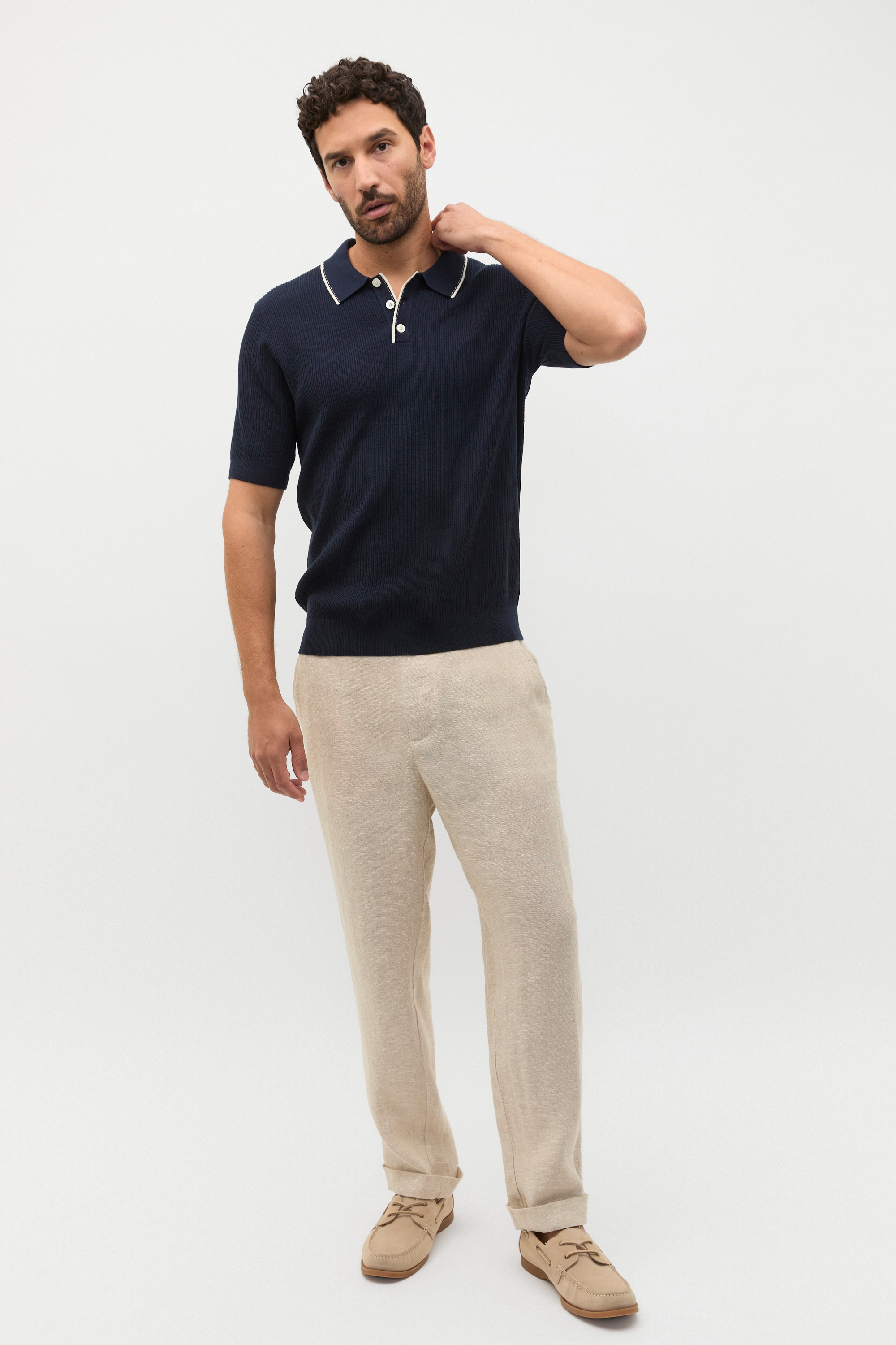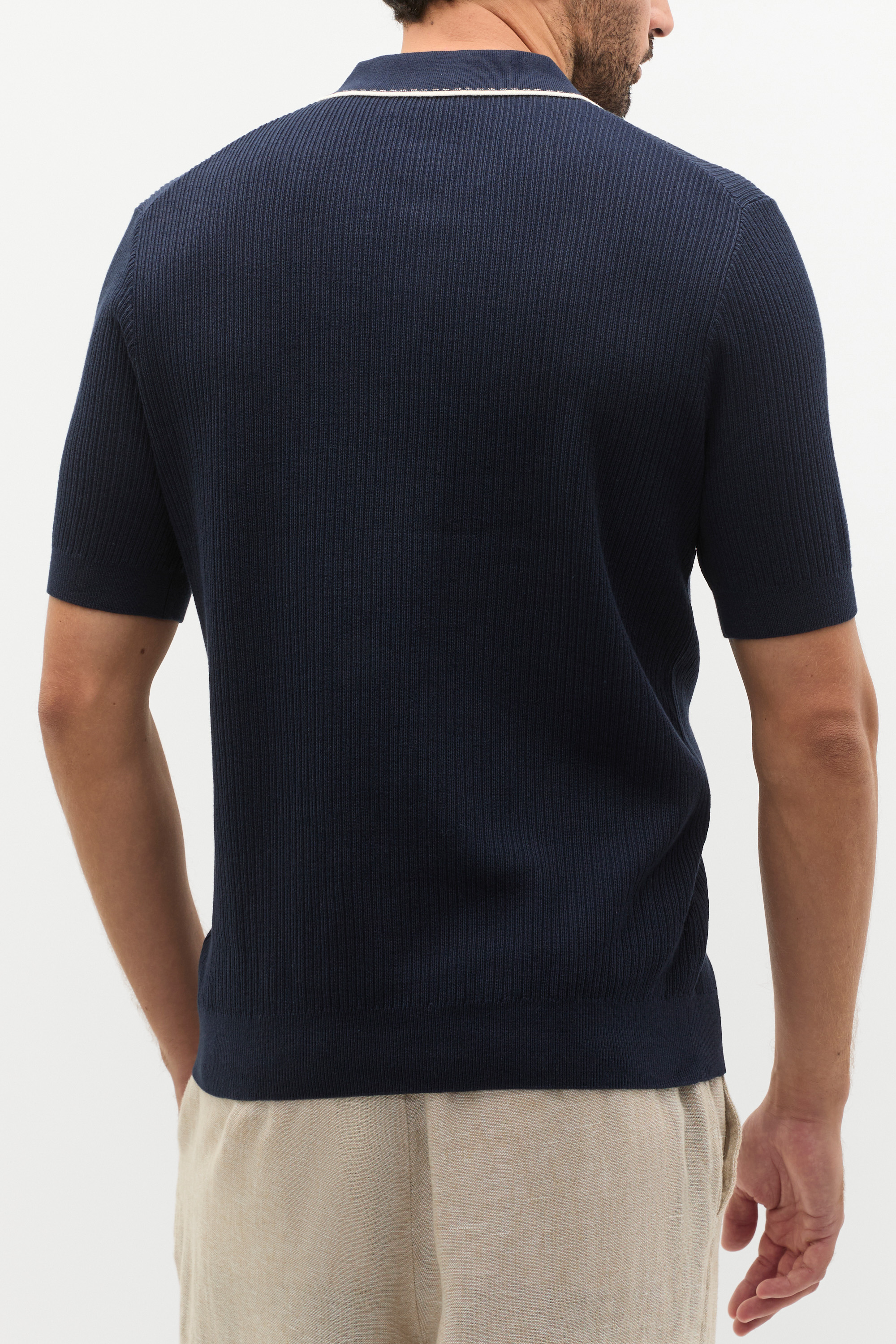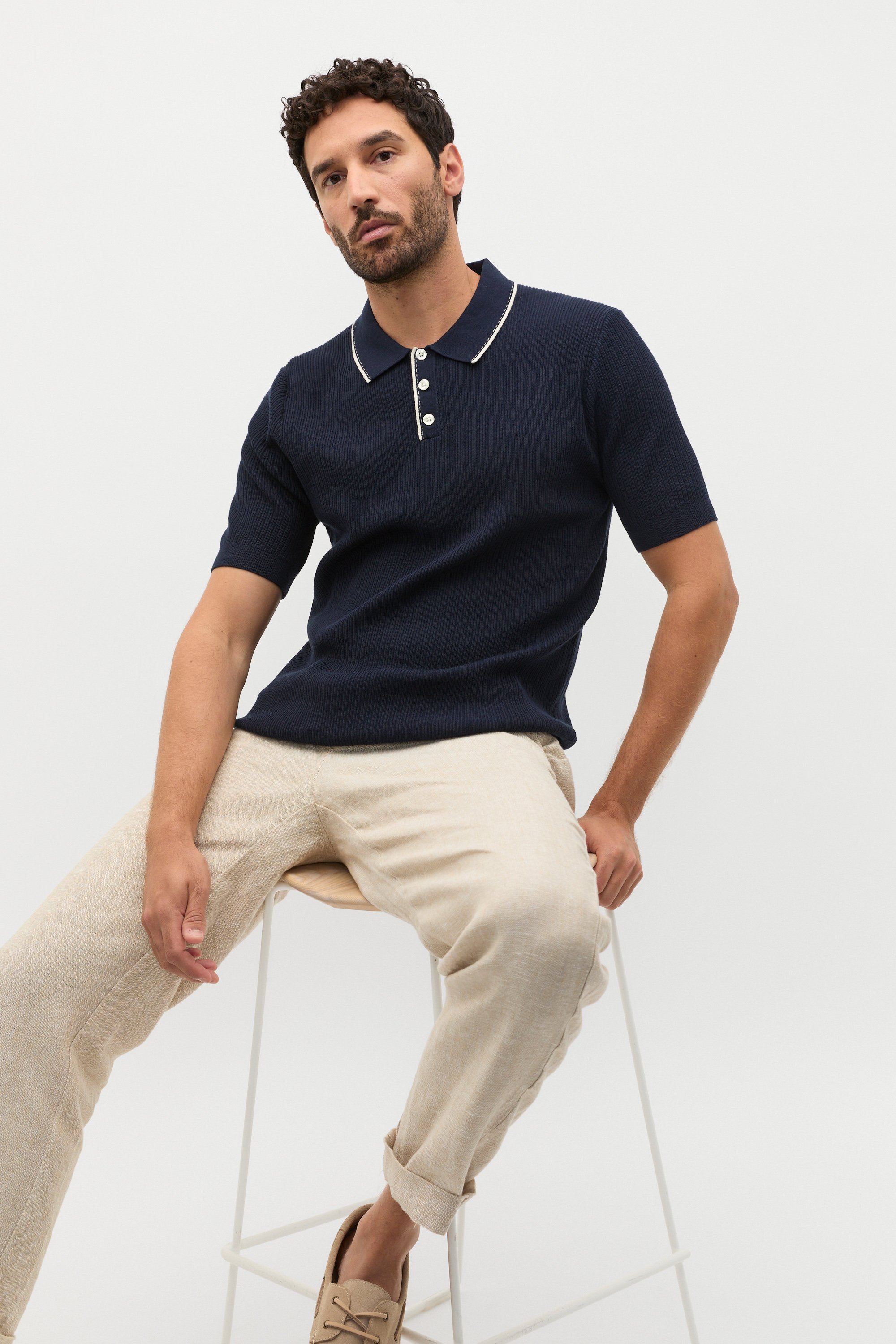 An elevated option for his everyday style, this polo is one he'll wear on repeat. Crafted in premium cotton, it features a button collar with contrast tipping, short sleeves and a ribbed finish.