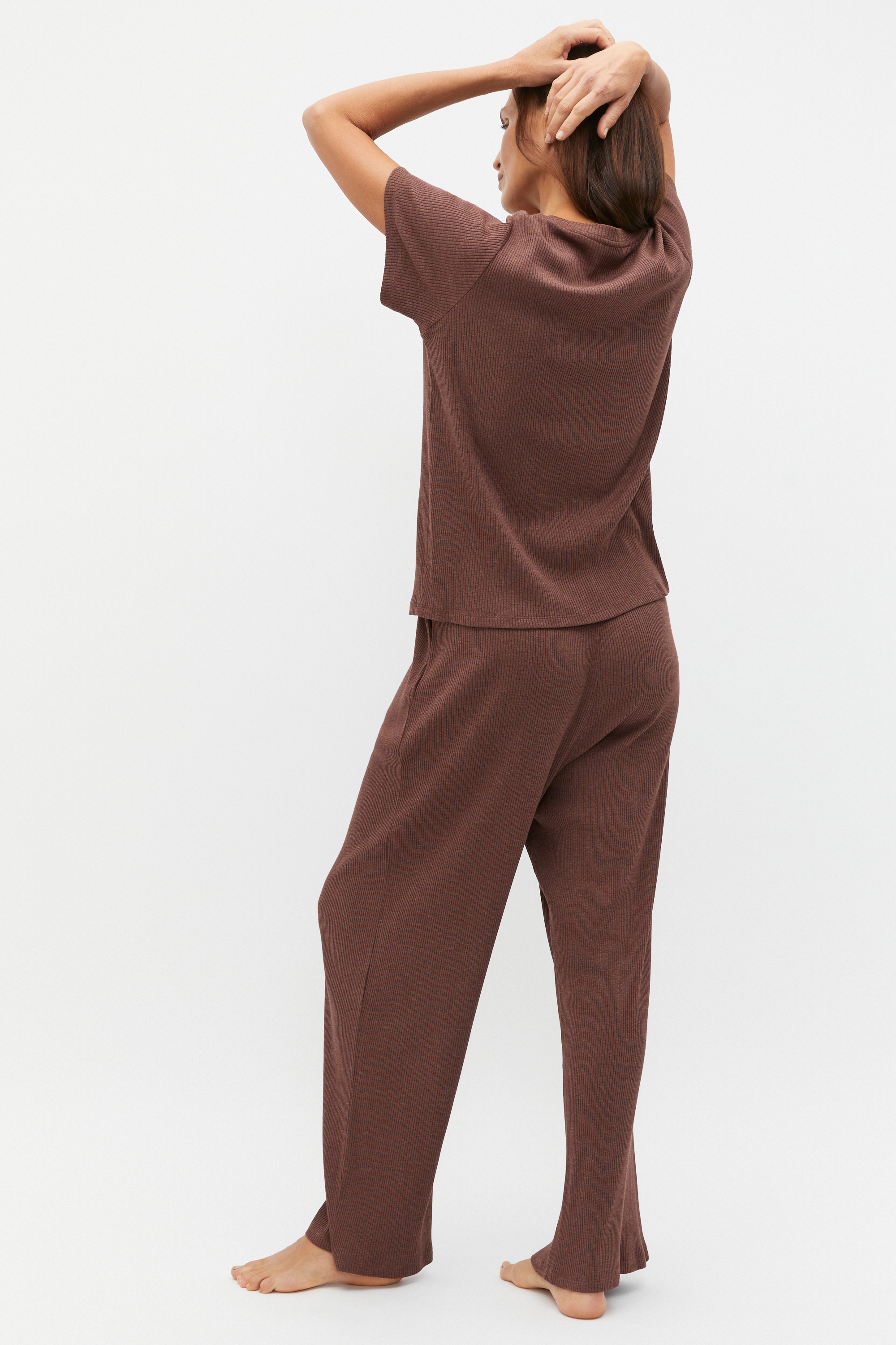 Ribbed Short Sleeve Tee And Pant PJ Set