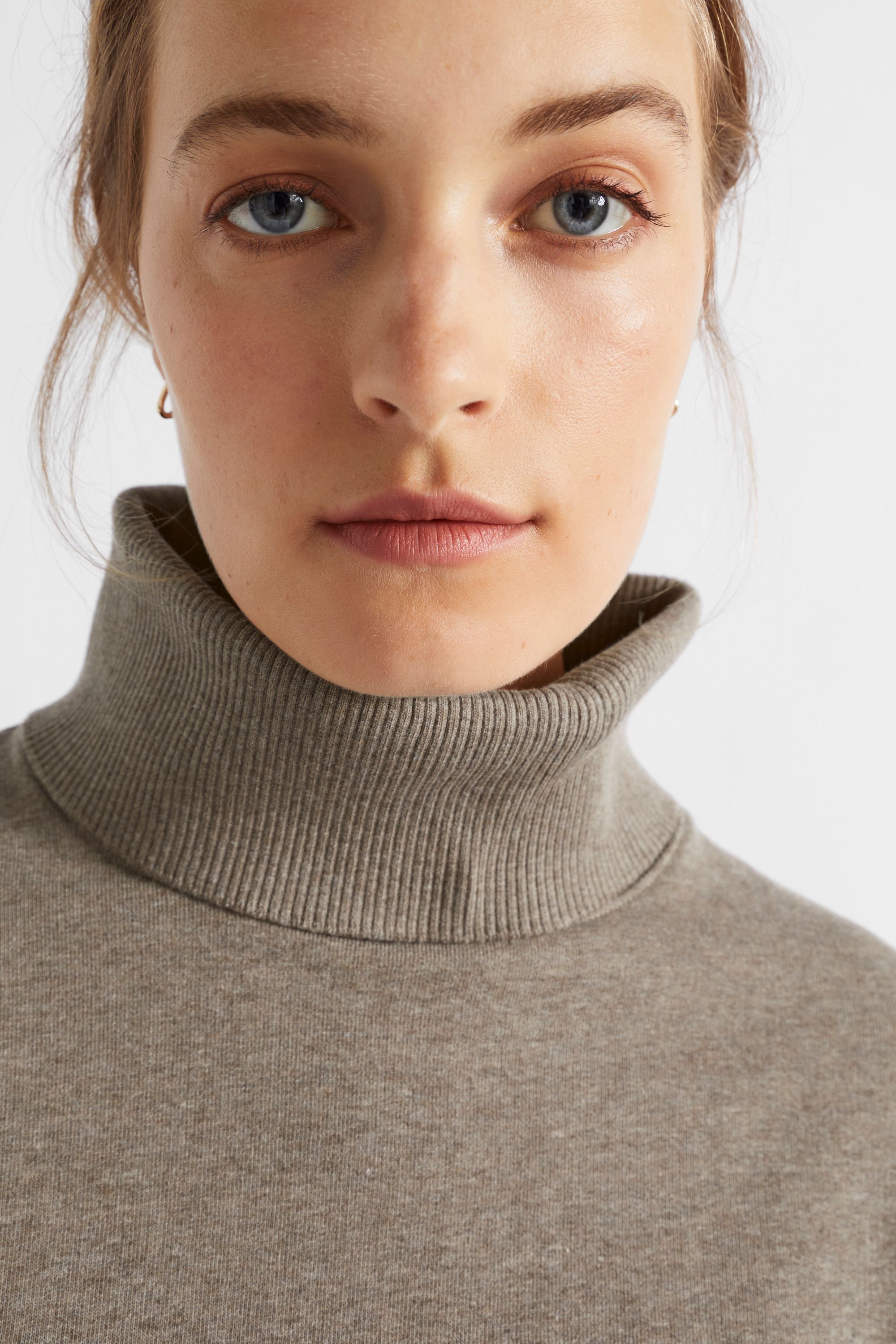 With a ribbed roll neck collar for added warmth, this sweater is an autumn-winter essential. It is crafted from a heavyweight French terry fabric, and has a slightly boxy shape. By choosing our cotton products, you are supporting our investment in the Better Cotton mission.