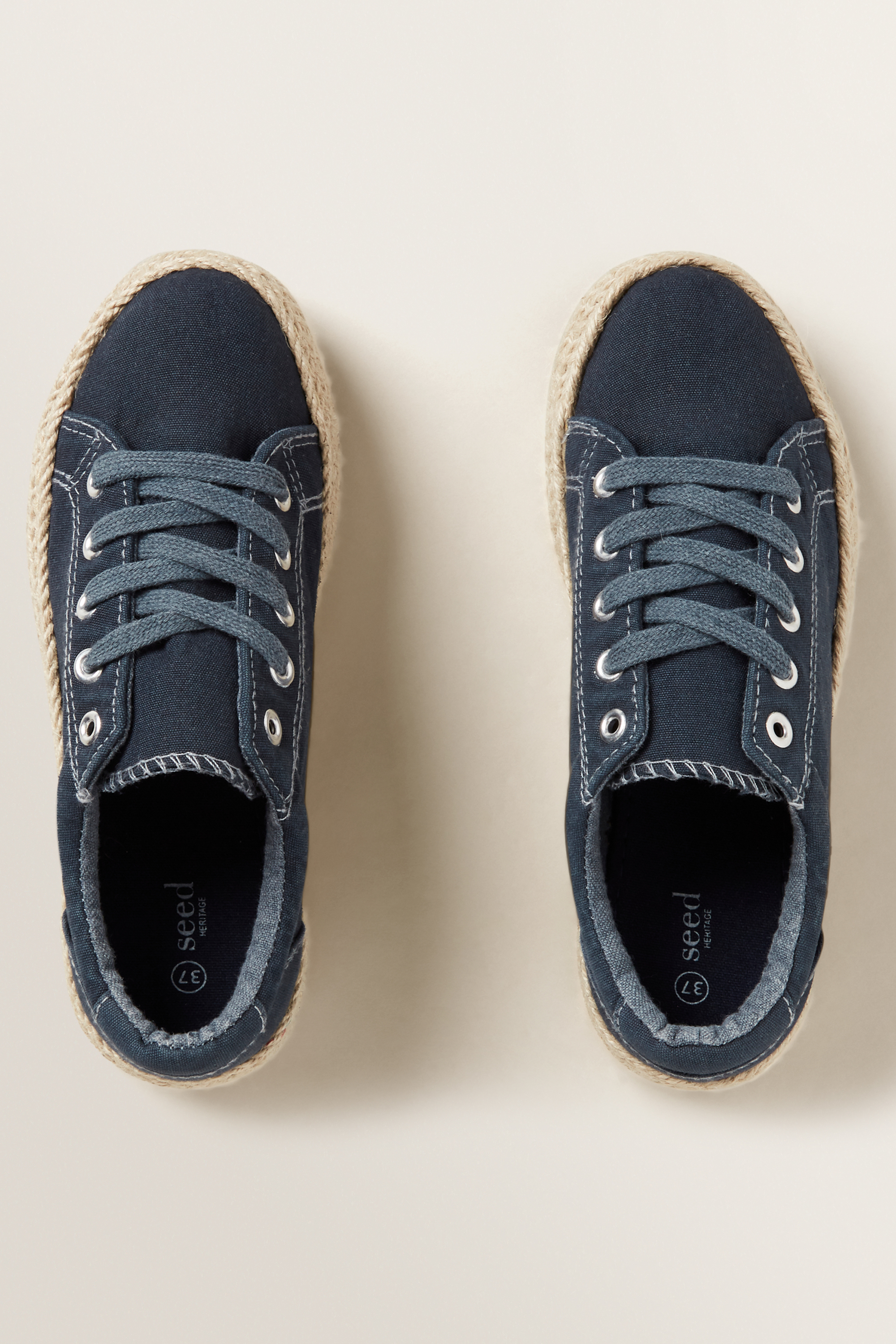 Detailed with a rope base, these Platform Runners put a contemporary twist on the classic espadrille and sneaker. Featuring a five-eyelet lace up design, they are fitted with a comfy heel tab for added support. Made from a durable Cotton Canvas, these Platform Runners are available in sizes 34 to 40.