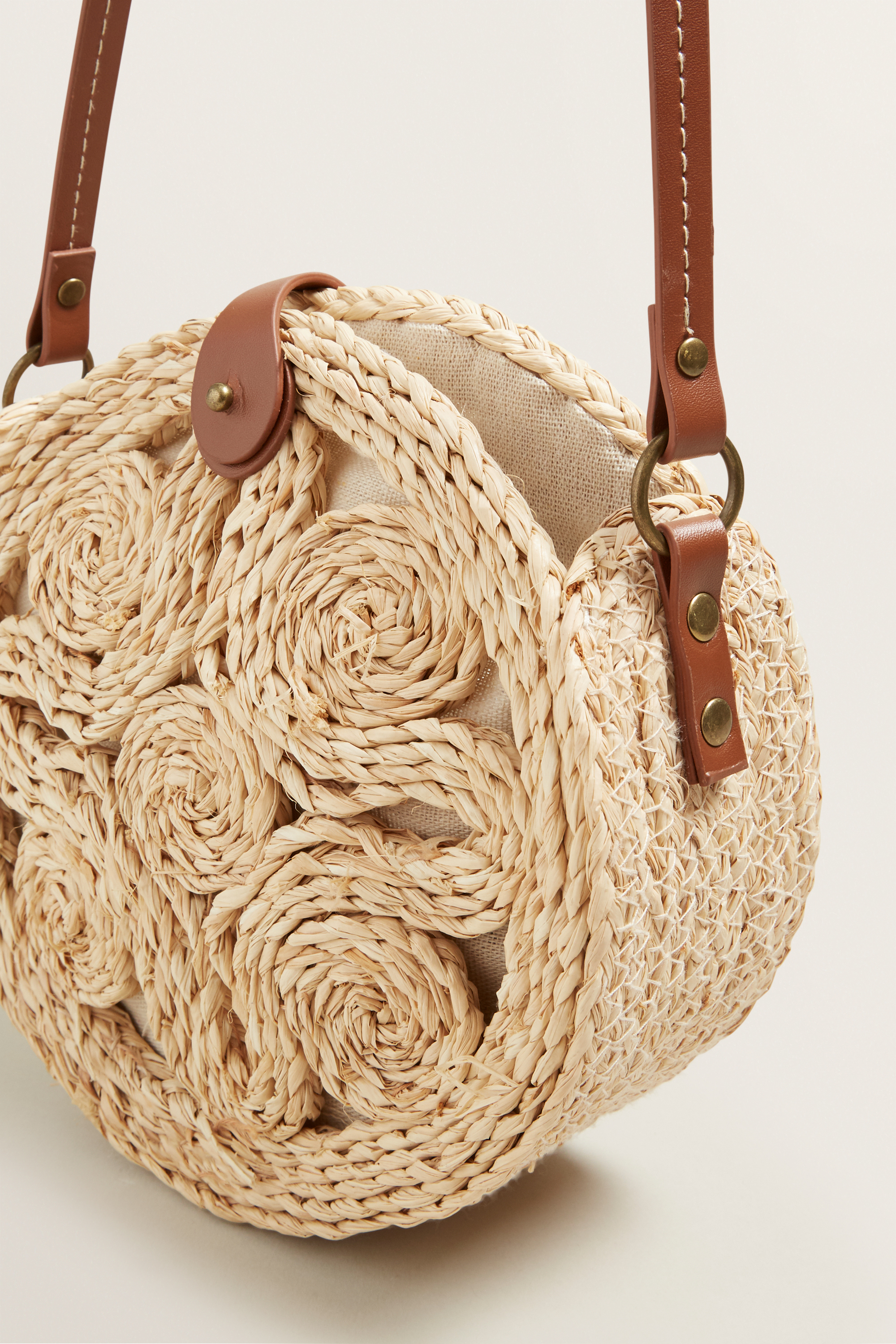 Exude beach-ready styling, with this Round Sling. Featuring a natural woven blend, this sling features a long cross-body strap, lined interior, latch closure and contrast trims.
