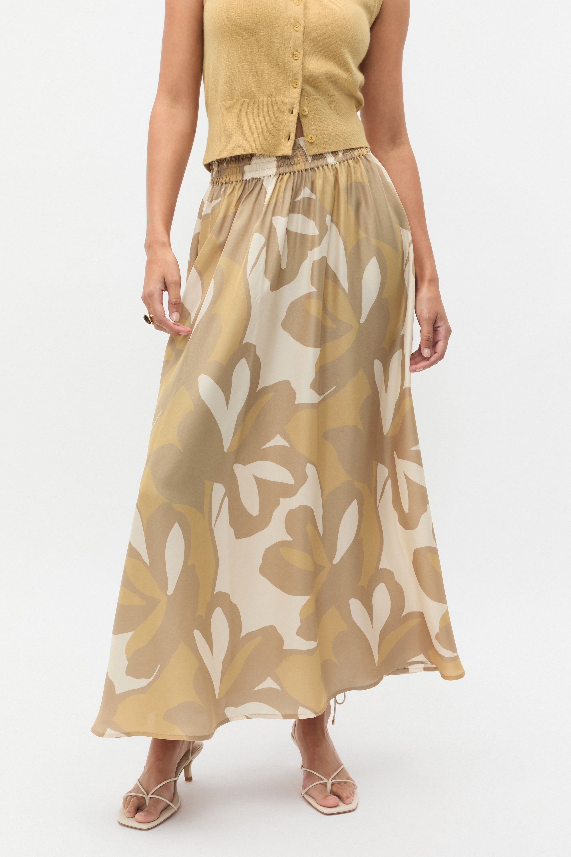An elevated style for your warm weather wardrobe, this skirt is chic and holiday-ready. Finished in a luxe satin, it features an elasticated waistband and a flowing A-line skirt that falls to a maxi length. Style with the coordinating print pieces for an elevated matching moment.