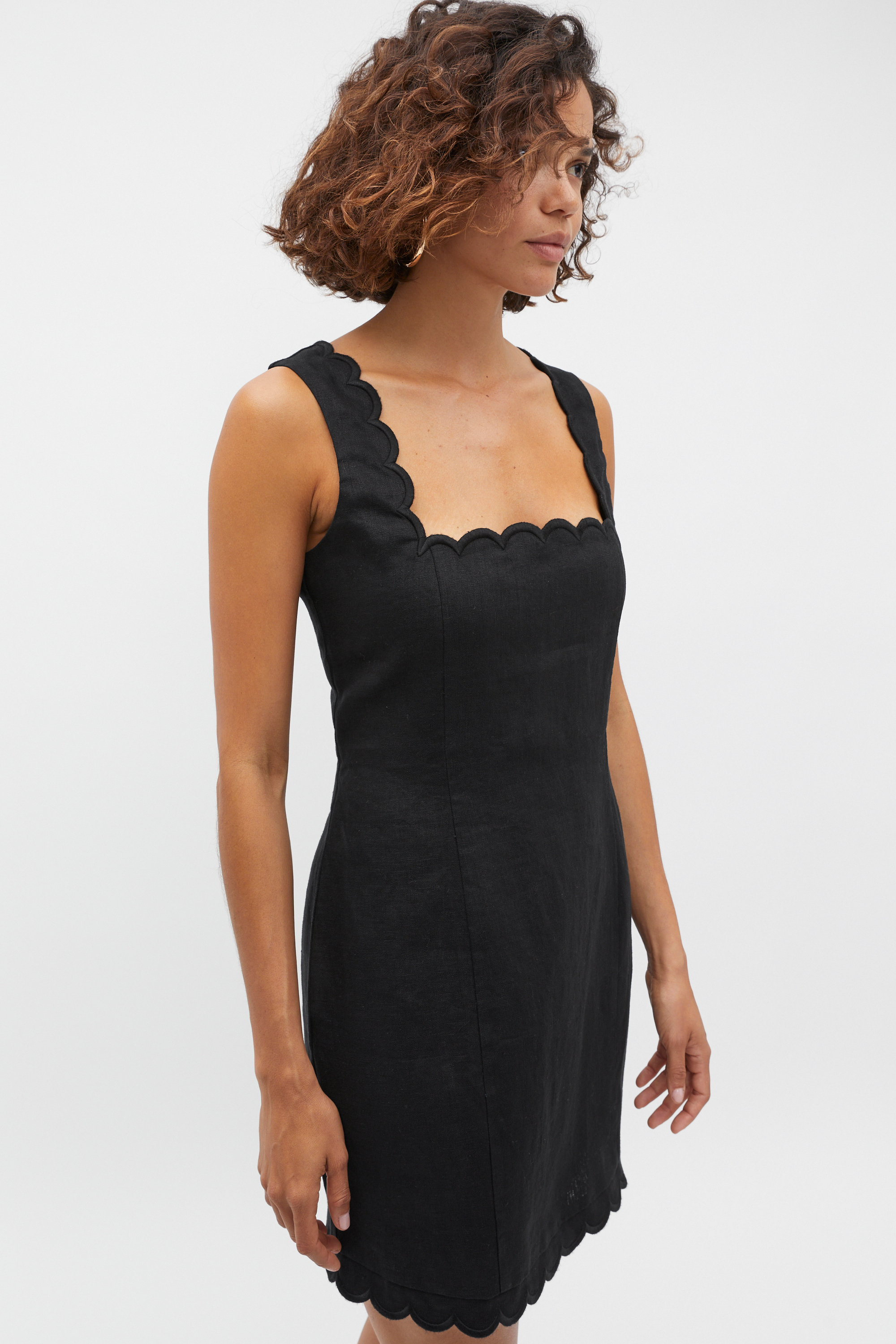 Elevate your holiday dressing with this chic mini, crafted from premium linen. It features a scallop trim and waist dart details for a structured finish.
