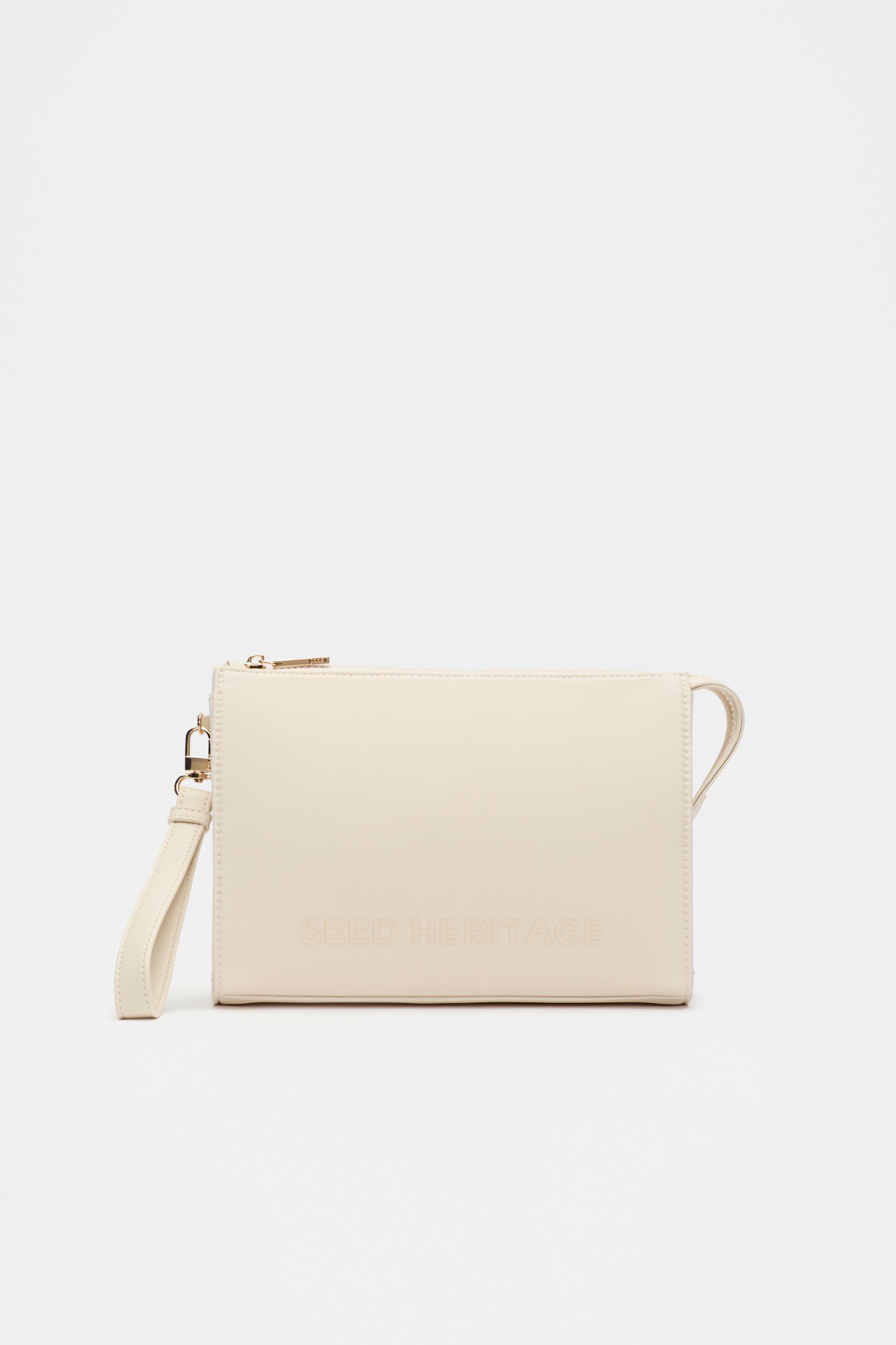 Keep your essentials close at hand with this pouch, featuring a wristlet strap, a zip closure, and a Seed Heritage logo detail. It is designed to match our baby bag for a convenient set.