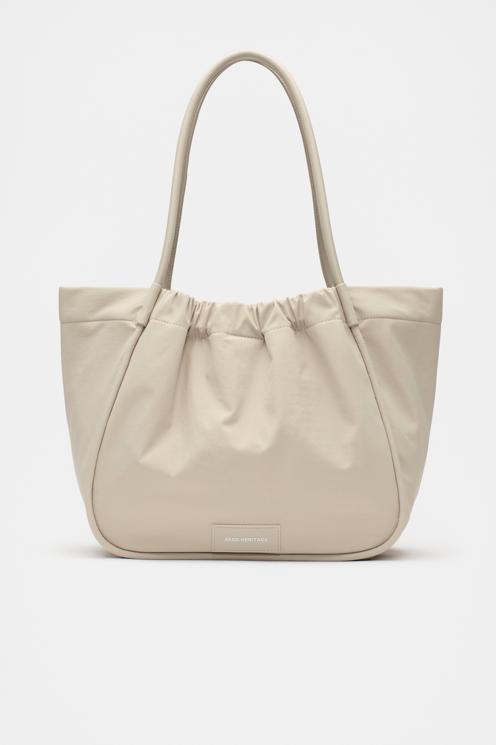 Carry everything you might need in this essential tote. In a statement shape with an open design, it features comfortable shoulder straps, a ruching detail, and a Seed Heritage logo patch. It's designed to match the essential crossbody bag and cap.