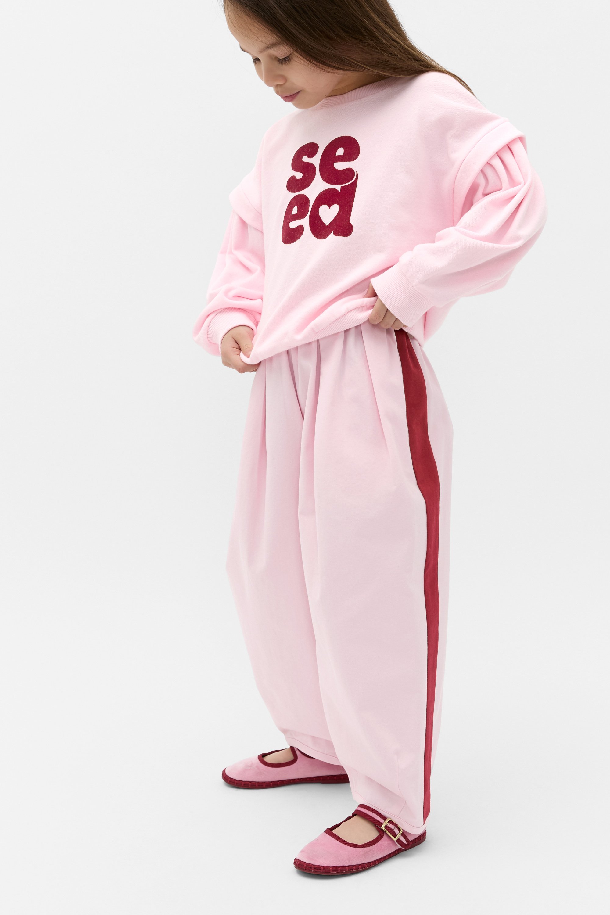This statement style pairs everyday comfort with fashion fun. Crafted in premium cotton, it features a crew neck, long sleeves with a drop shoulder detail, ribbed trims at the cuffs and hem and a printed Seed logo design. Style with the coordinated tracksuit pants for the cutest head-to-toe look.