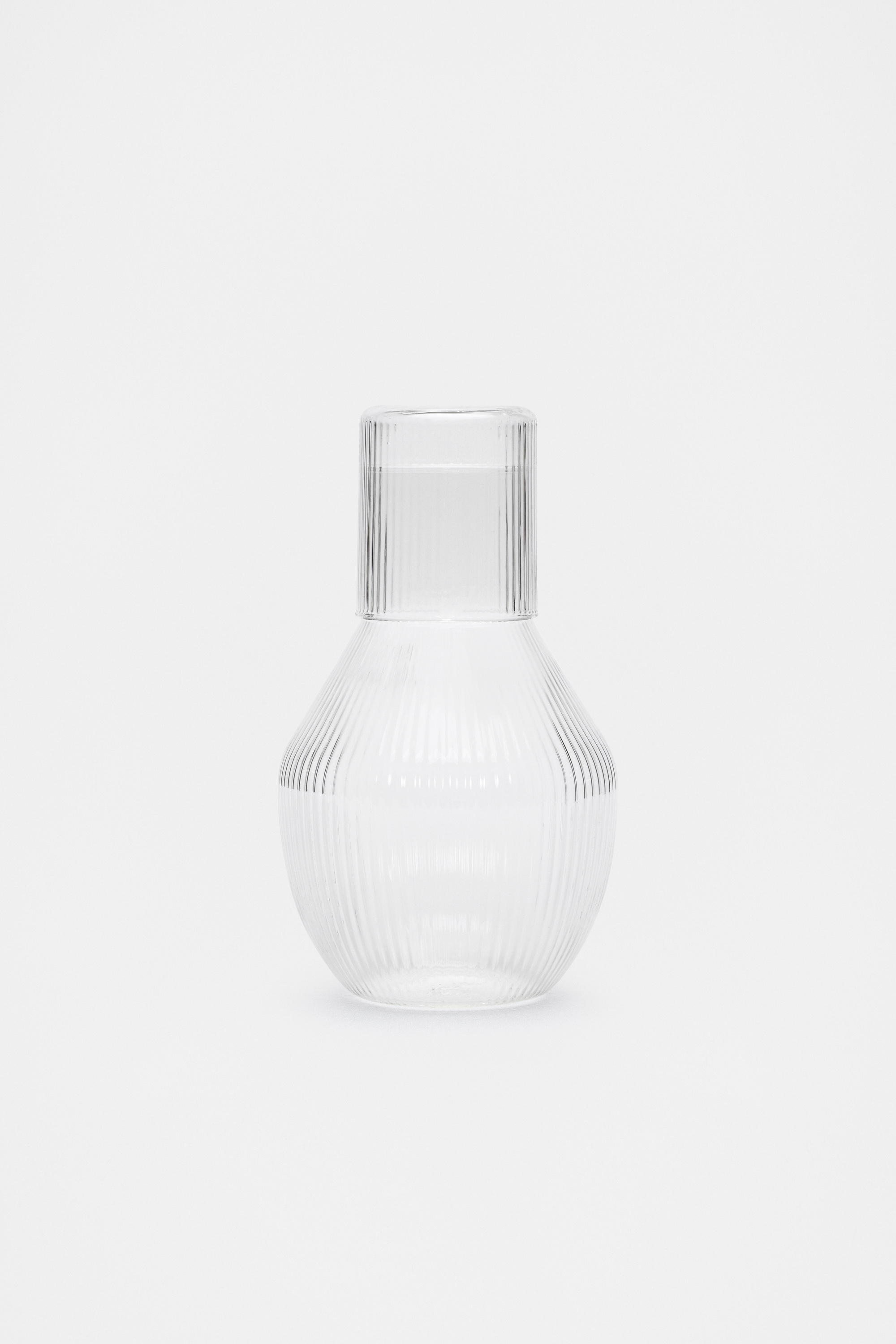 Ideal as an accent piece for a desk or table, this set includes a carafe and a matching glass, making it the perfect gift. In a dynamic shape with a textured ripple design, the set is designed to complement the rest of this season's glassware range.