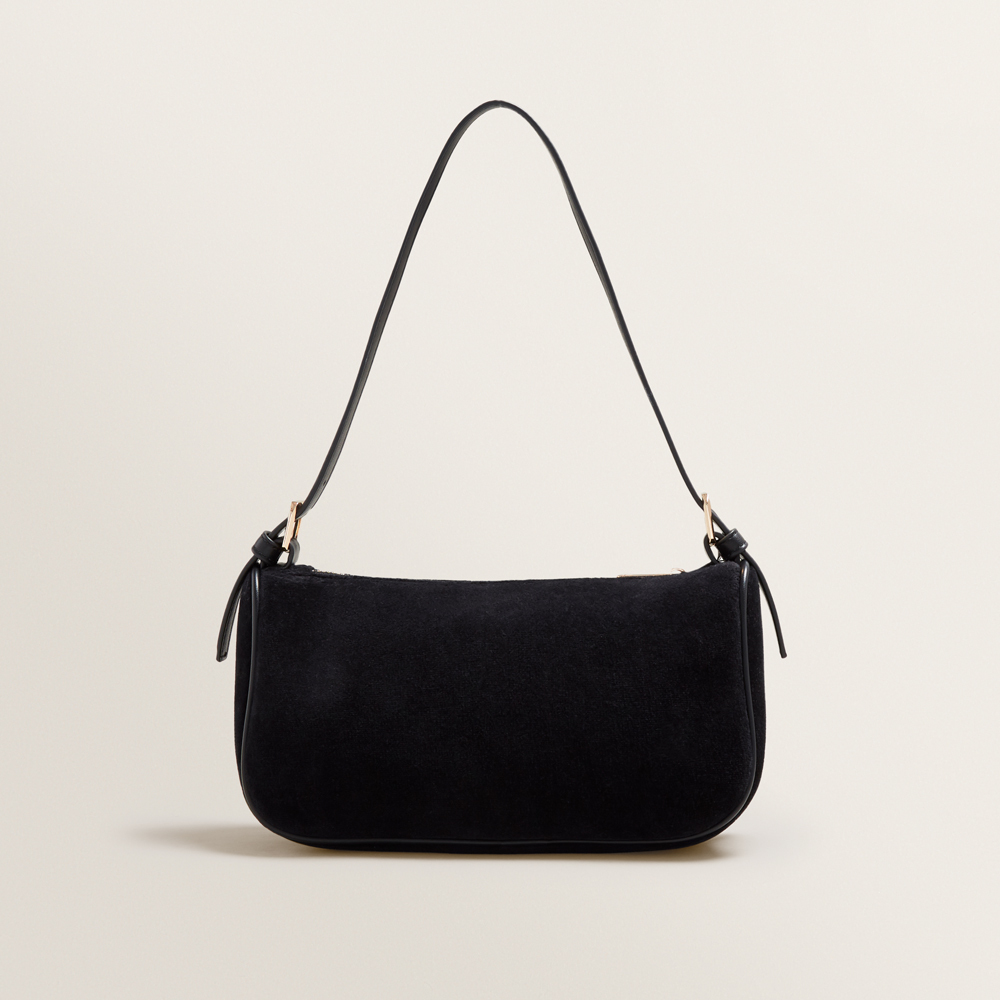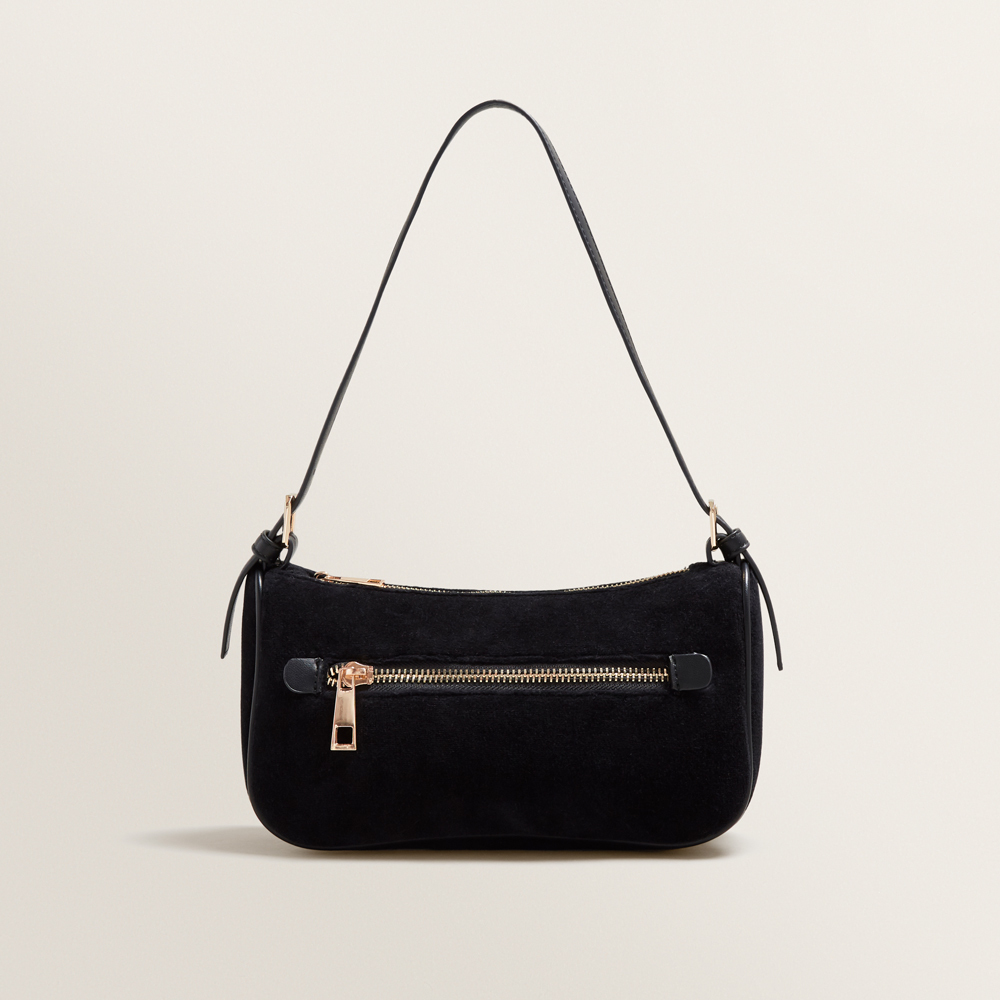 Sleek and sophisticated, this Shoulder Bag is a luxurious nineties revival piece. Designed to sling over the shoulder, this bag features a zip top closure, and is detailed with a side zip. Made from a velvet fabrication, this Shoulder Bag is available in one size.