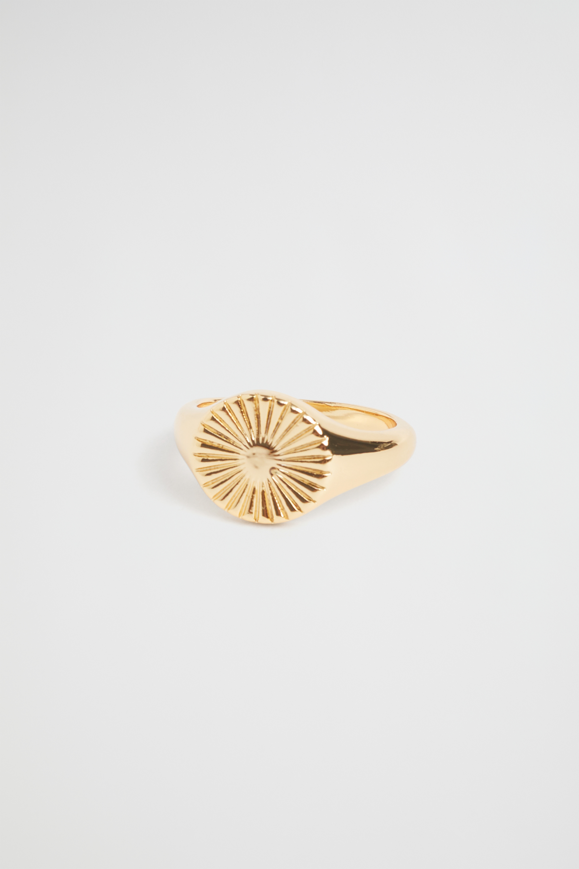 This signet ring is ideal for adding a polished note to your spring-summer outfits. Available in three sizes, it is crafted from a gold-look metal alloy.