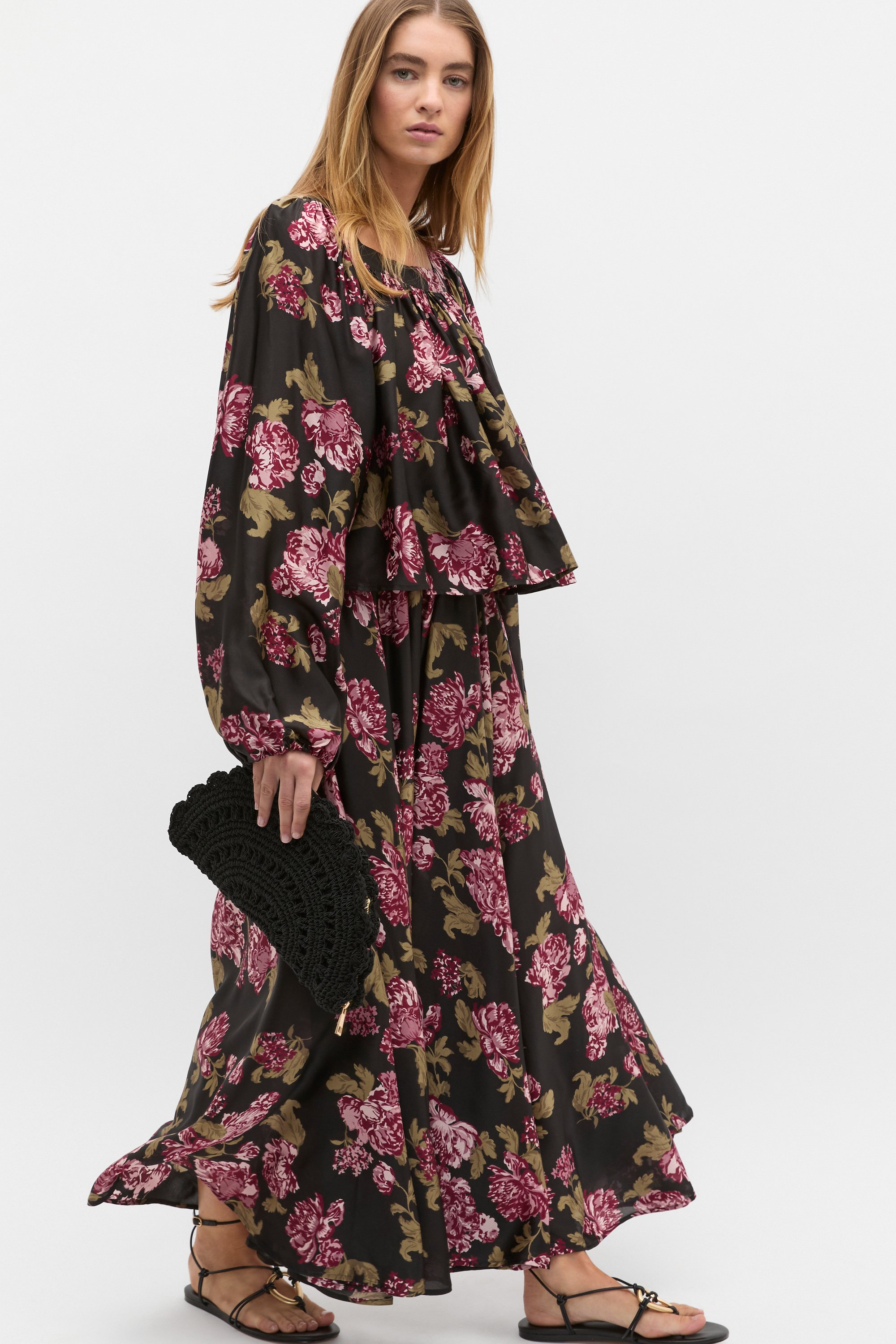 Crafted in 100% silk, this top elevates your spring styling with ease and femininity. It features a square neckline, bell sleeves detailed with tie cuffs and a relaxed, loose fitting shape through the body. Style with the matching floral skirt for an elegant head-to-toe look.