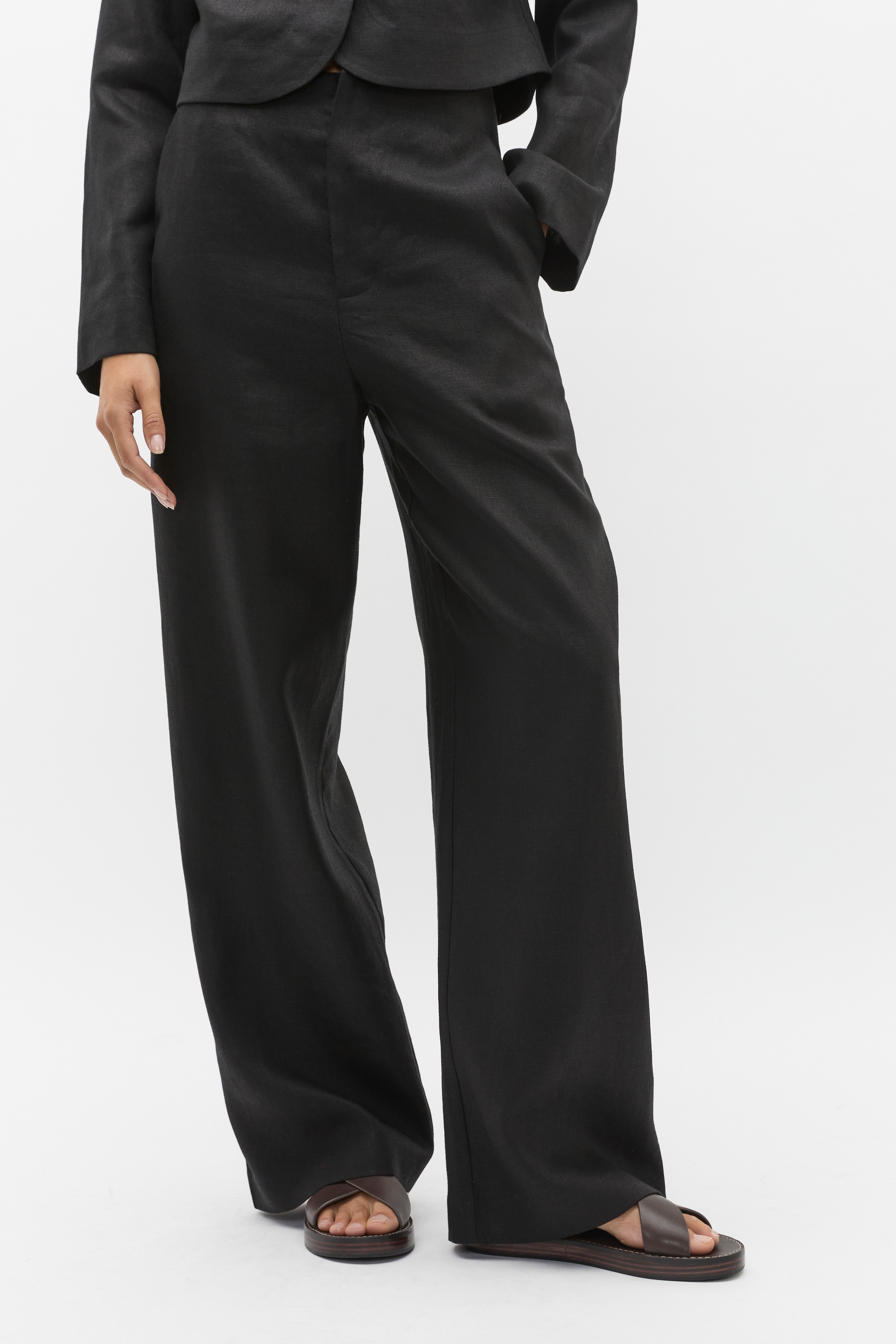 Elegant in their simplicity, these pants are crafted in a breathable lightweight linen, perfect for your warm-weather getaway. They feature a fixed waistband with a zip front, pockets and a subtle flare through the leg.