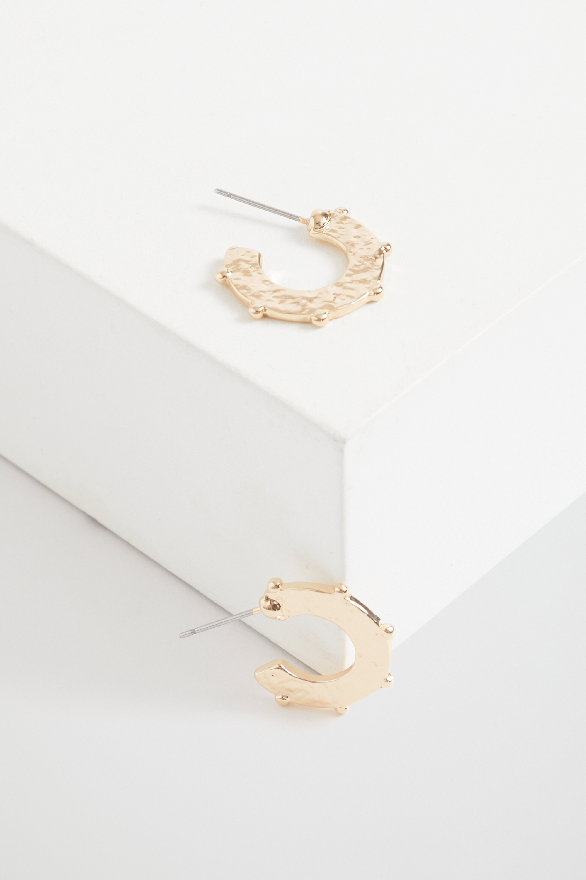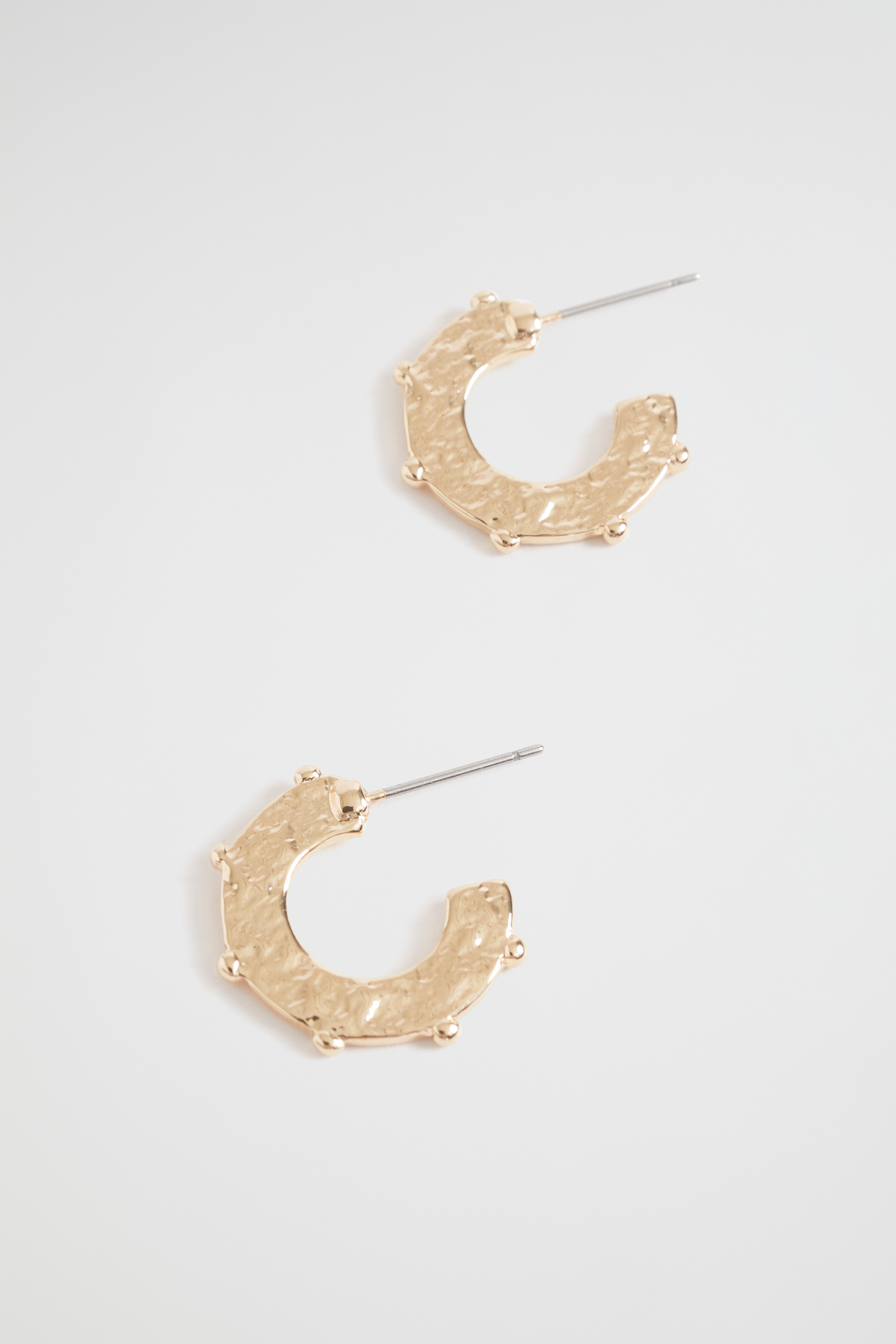 In an open hoop style decorated with small round balls, these earrings have an organic, modern feel. They are crafted from a gold-look metal alloy.