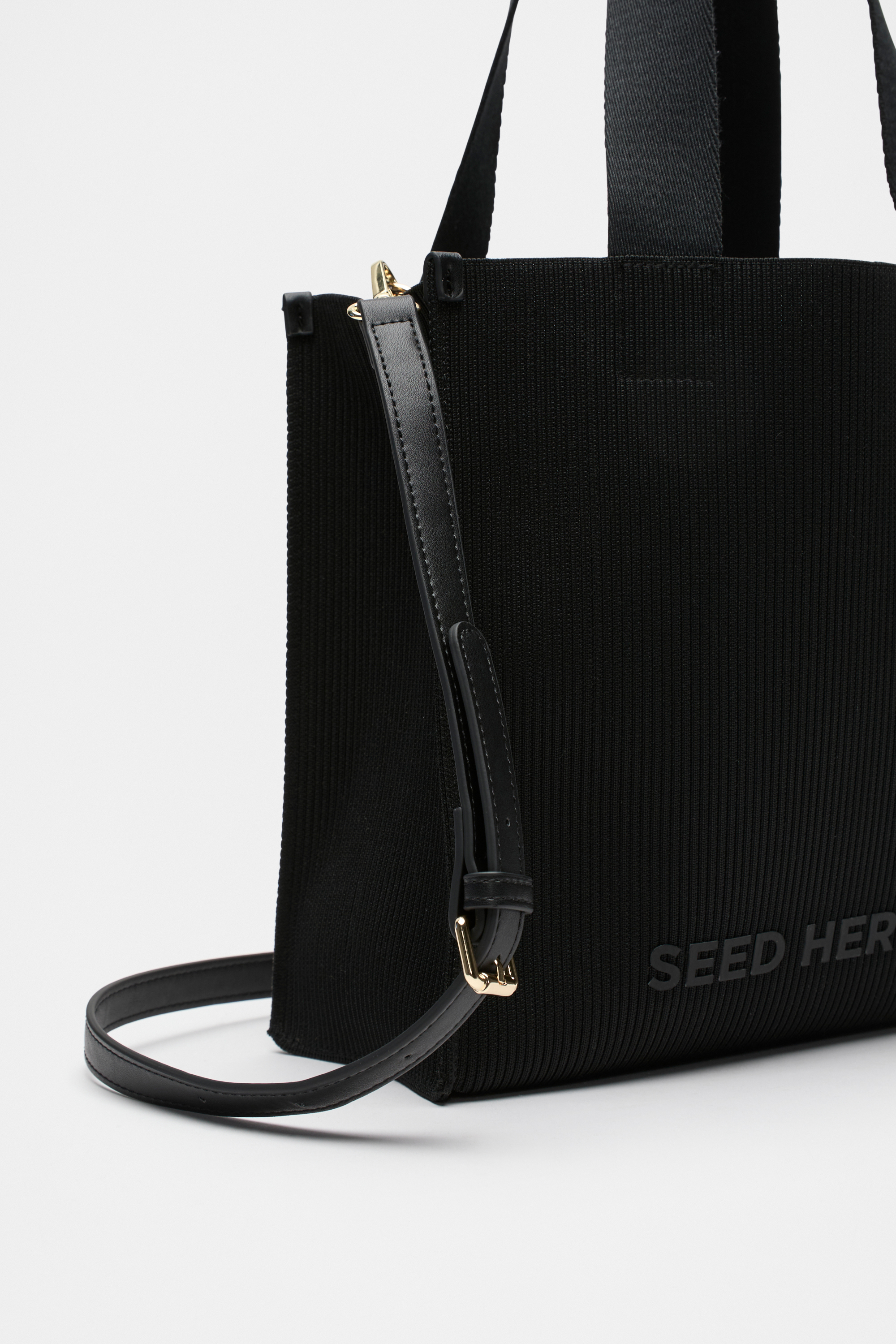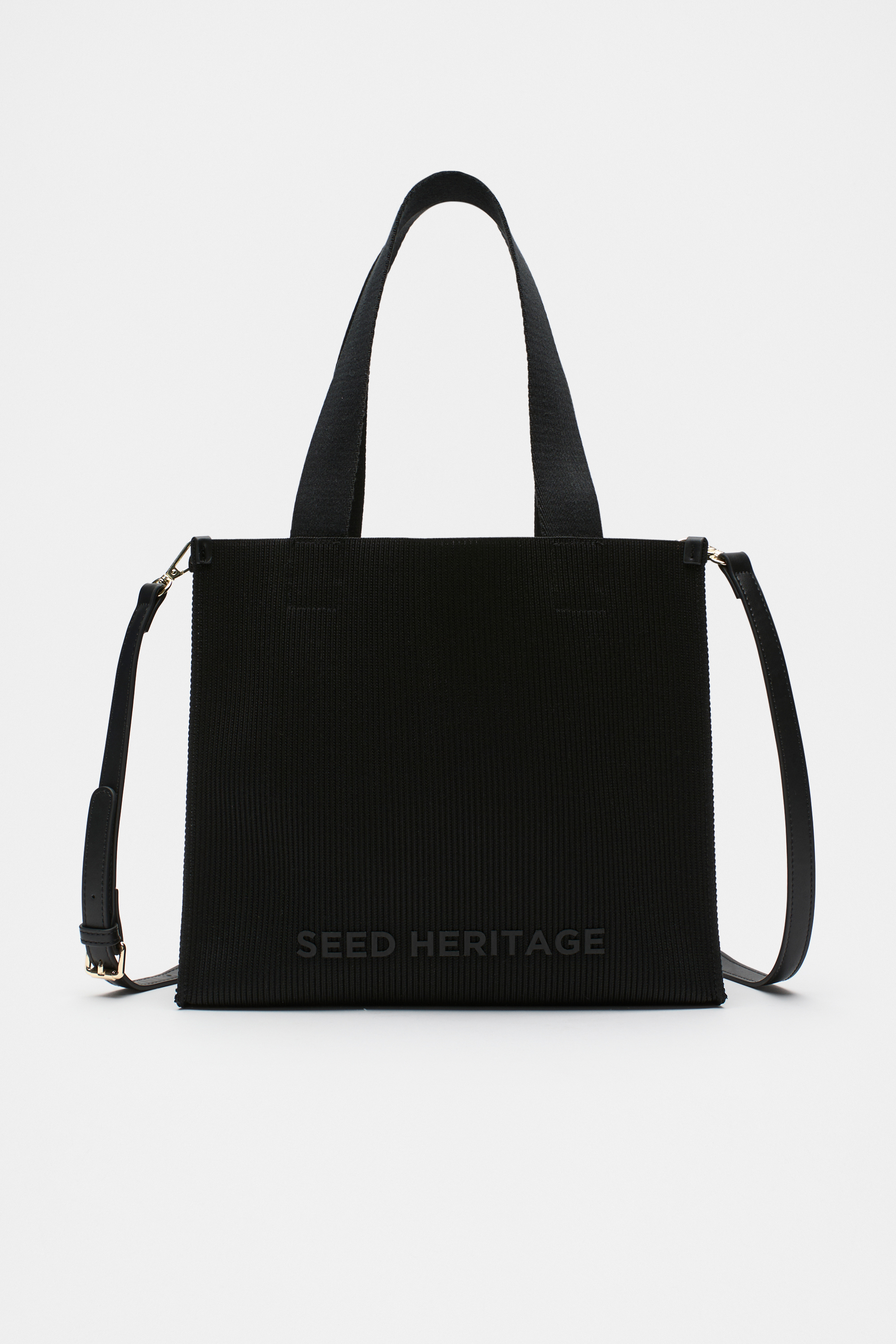 This tote is a versatile style and features a soft knit finish to elevate your day to day. It features an embroidered Seed Heritage logo, short carry handles with a repeating logo design and a removable crossbody strap. Coordinate with the knit zip purse for a chic matching set.