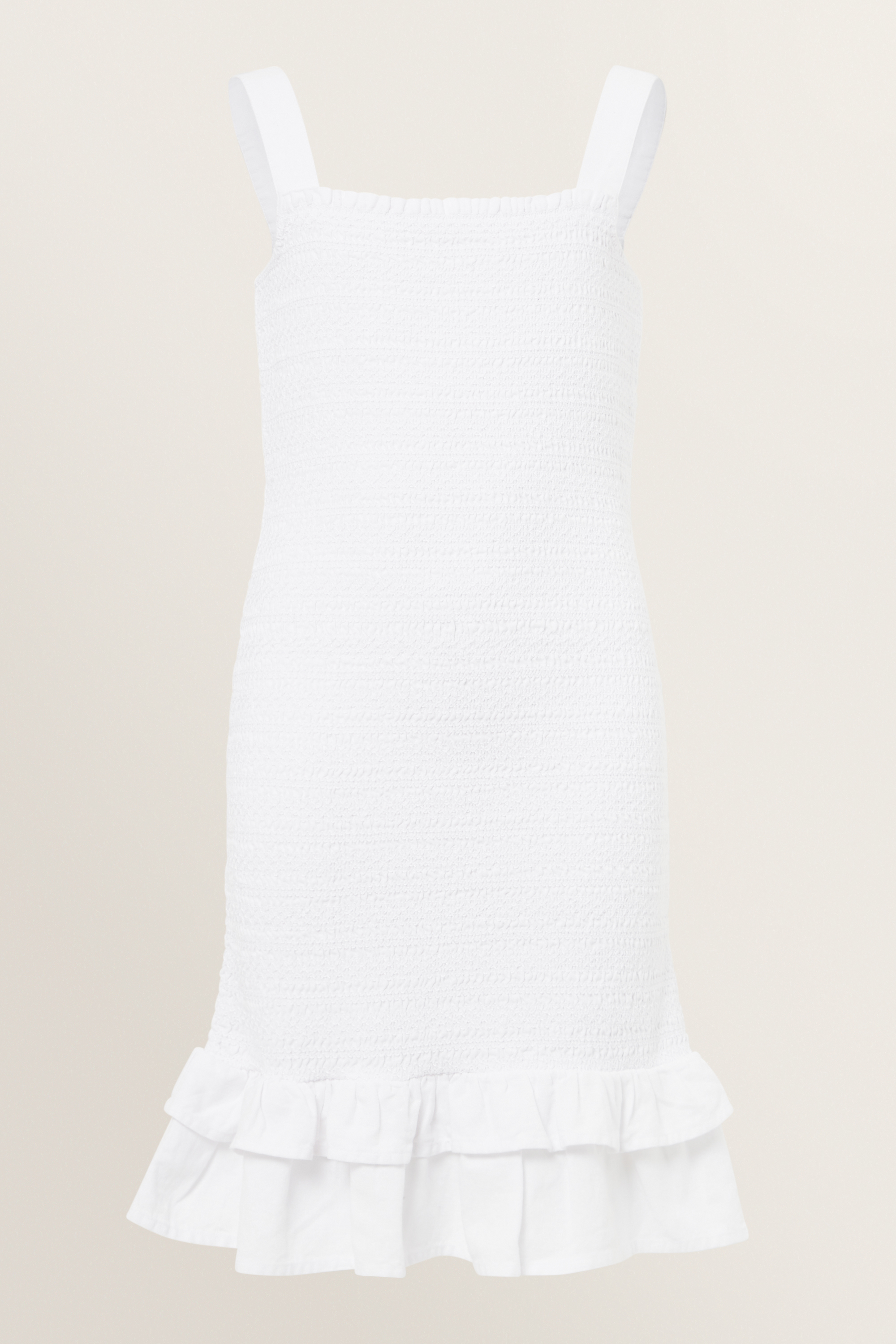 Featuring a retro shirred silhouette, this Smocked Linen Dress is designed with a square neckline, shoulder straps and fitted mini silhouette.