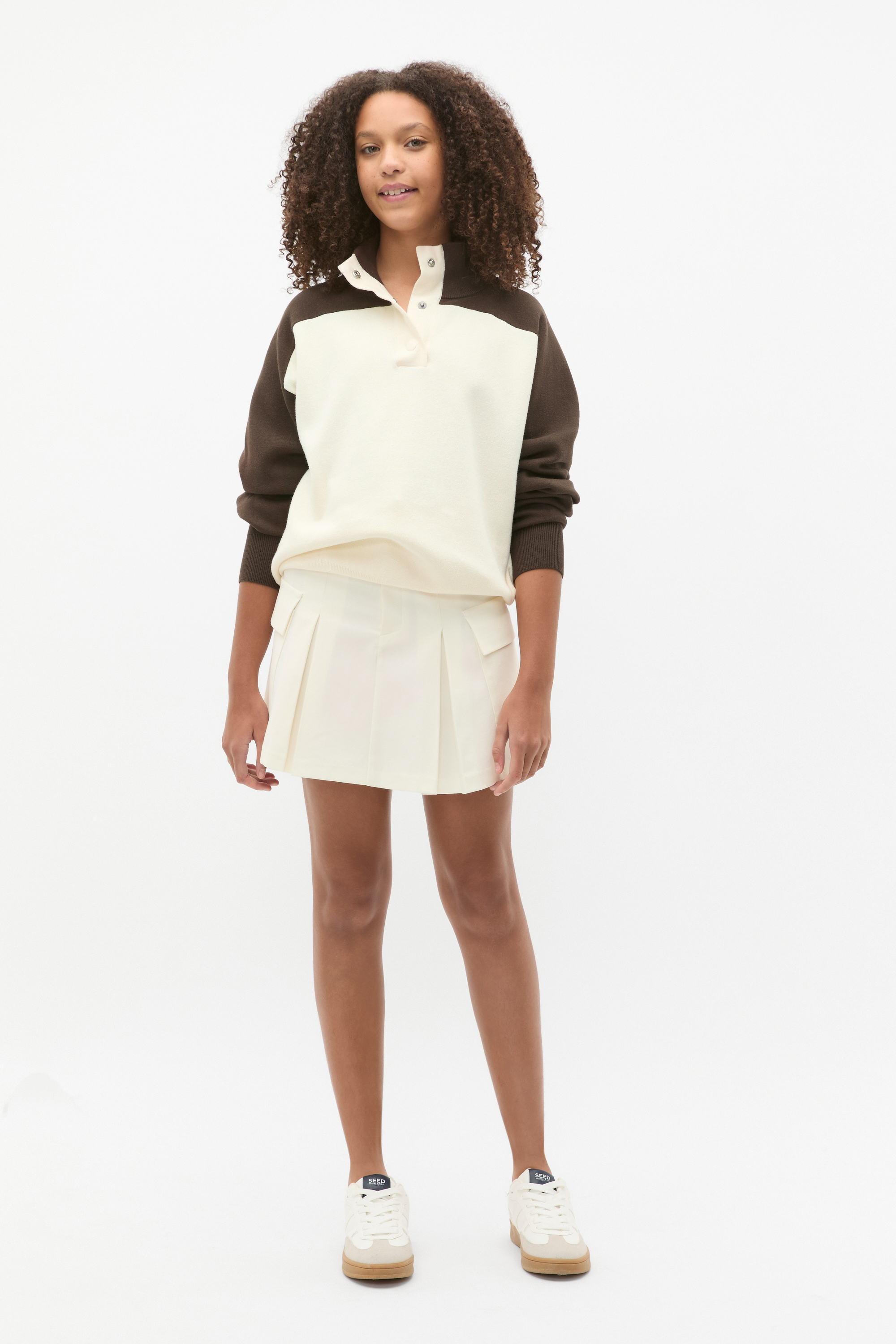Finished in the colour palette of the season, this jumper is a handy addition to her everyday dressing. Crafted in a soft cotton blend, it features a high collar with a press stud button detail, long sleeves and ribbed trims for a cosy fit.