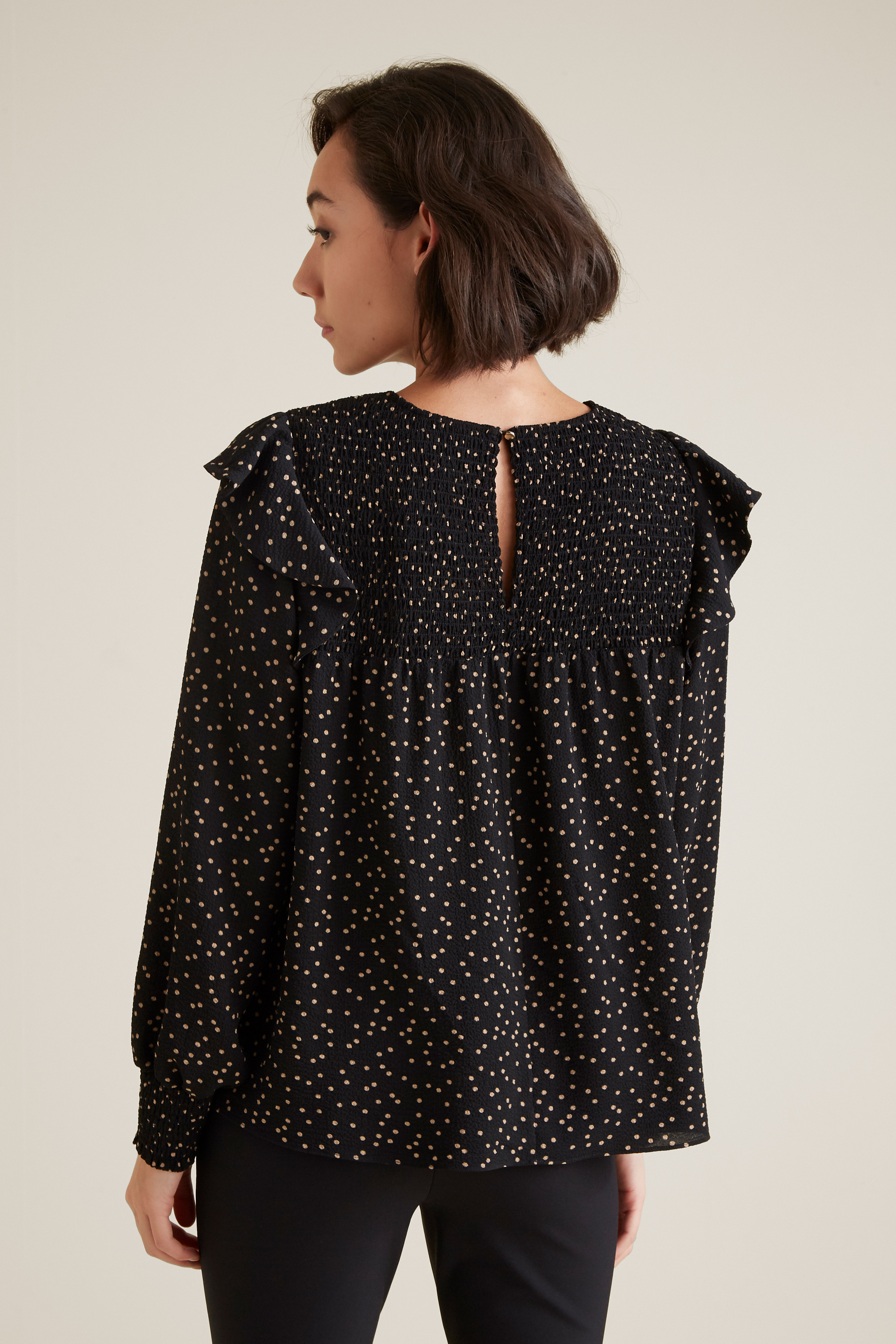 Femininity is reimagined, with this Soft Spot Frill Top.