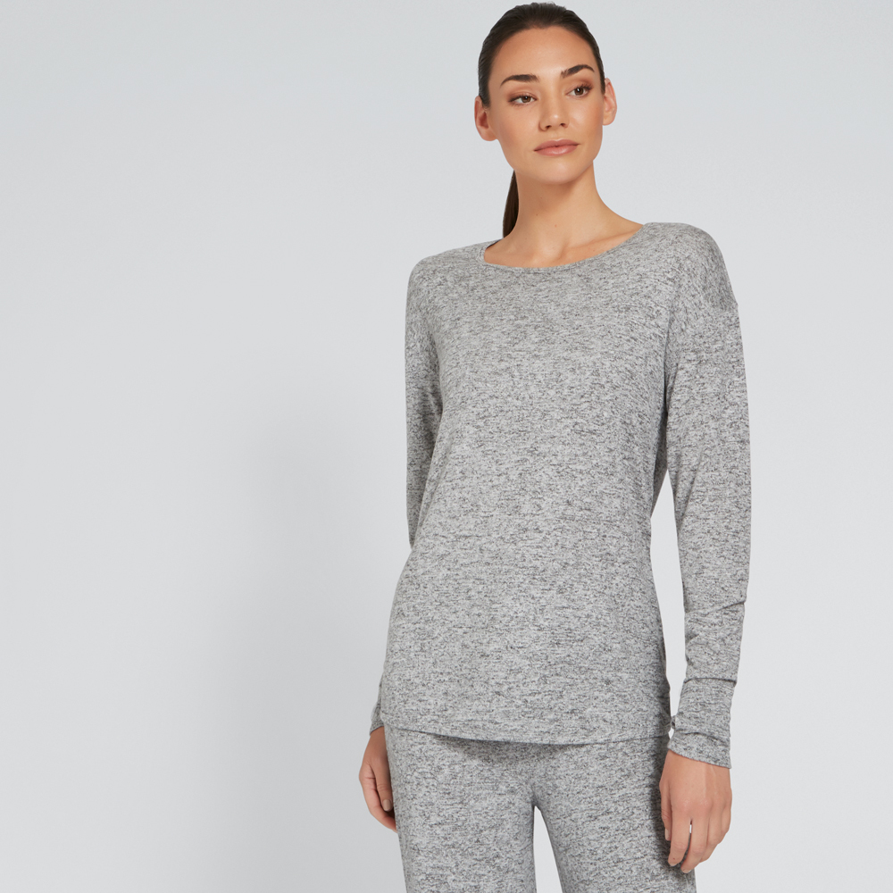 This top featues an all-over speckle design and curved hem. Made from a viscose/polyester/elastane blend, this top is available in Speckle Grey and is available in sizes XS to L. Please wash as per care instructions found on garment.