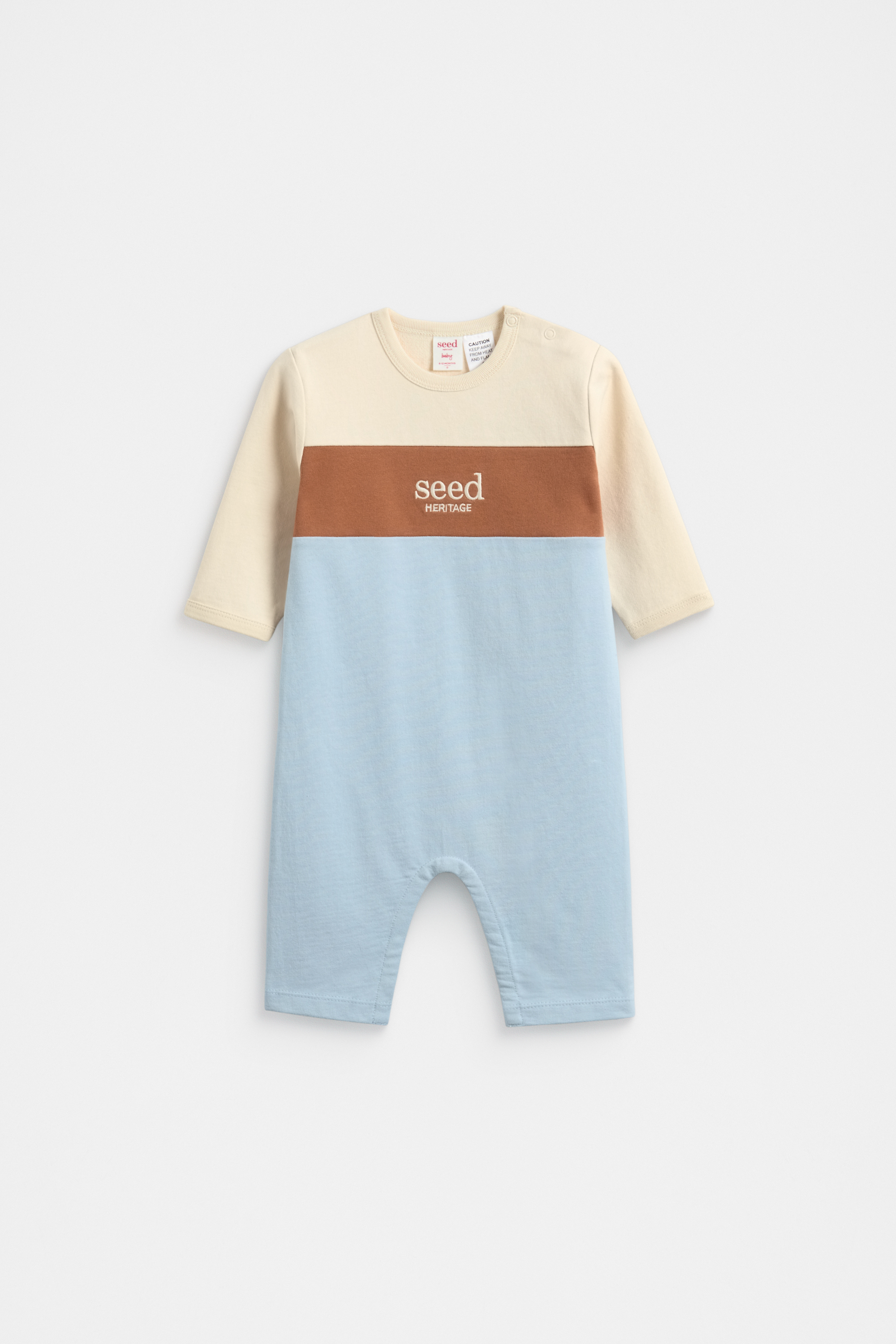 So cuddly and soft, this jumpsuit is the cosiest style to rug up in. Crafted in premium cotton, it features a round neck, long sleeves, a spliced design and an embroidered Seed Heritage logo. For easy, comfortable changes, it has snaps at the shoulders and gusset and has a relaxed fit.