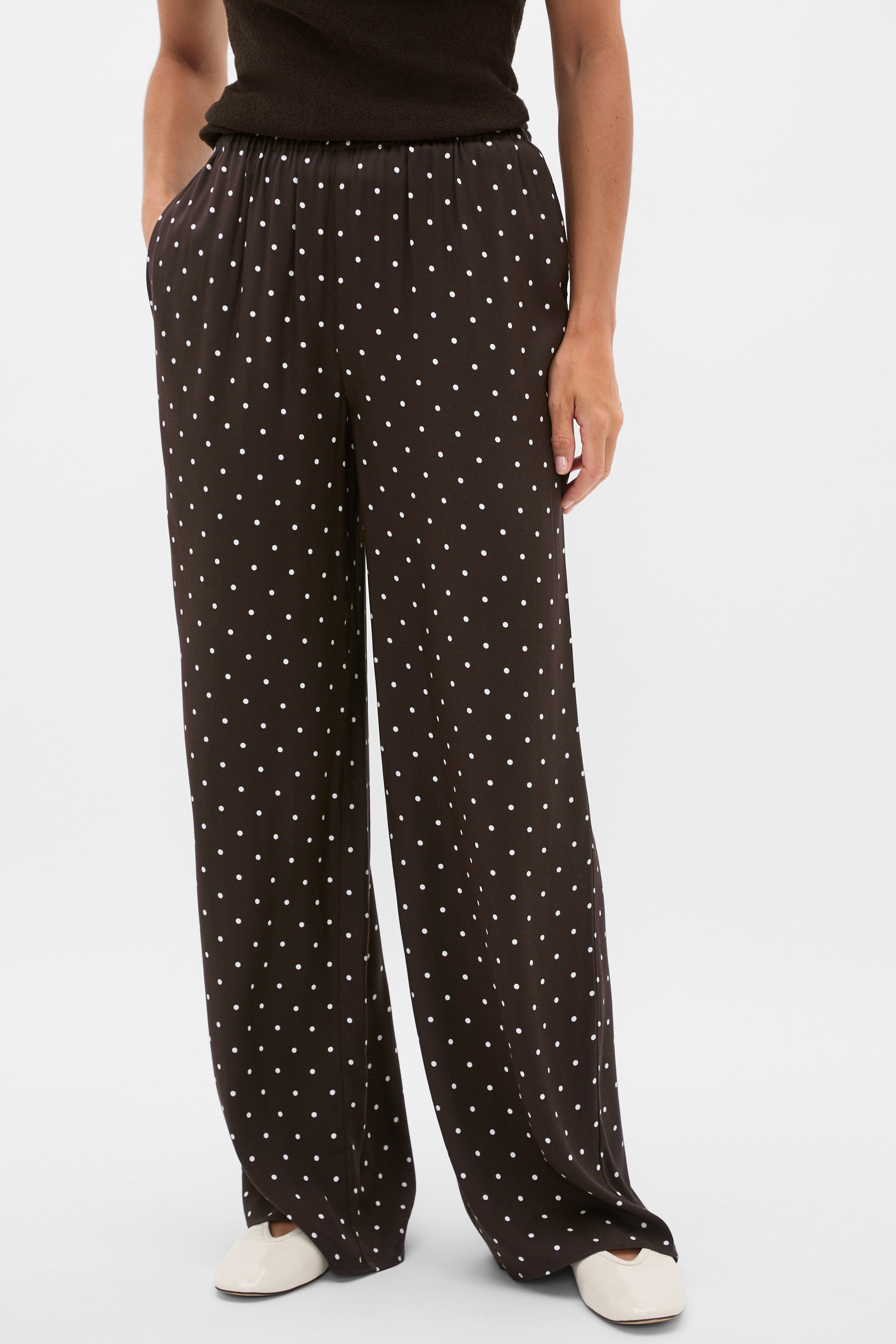 Lightweight and perfect for your warm weather getaways, these wide leg pants are a favourite style reimagined in a playful polka dot print. Crafted in viscose with a smooth finish, they feature an elasticated waistband, pockets and a straight leg shape.