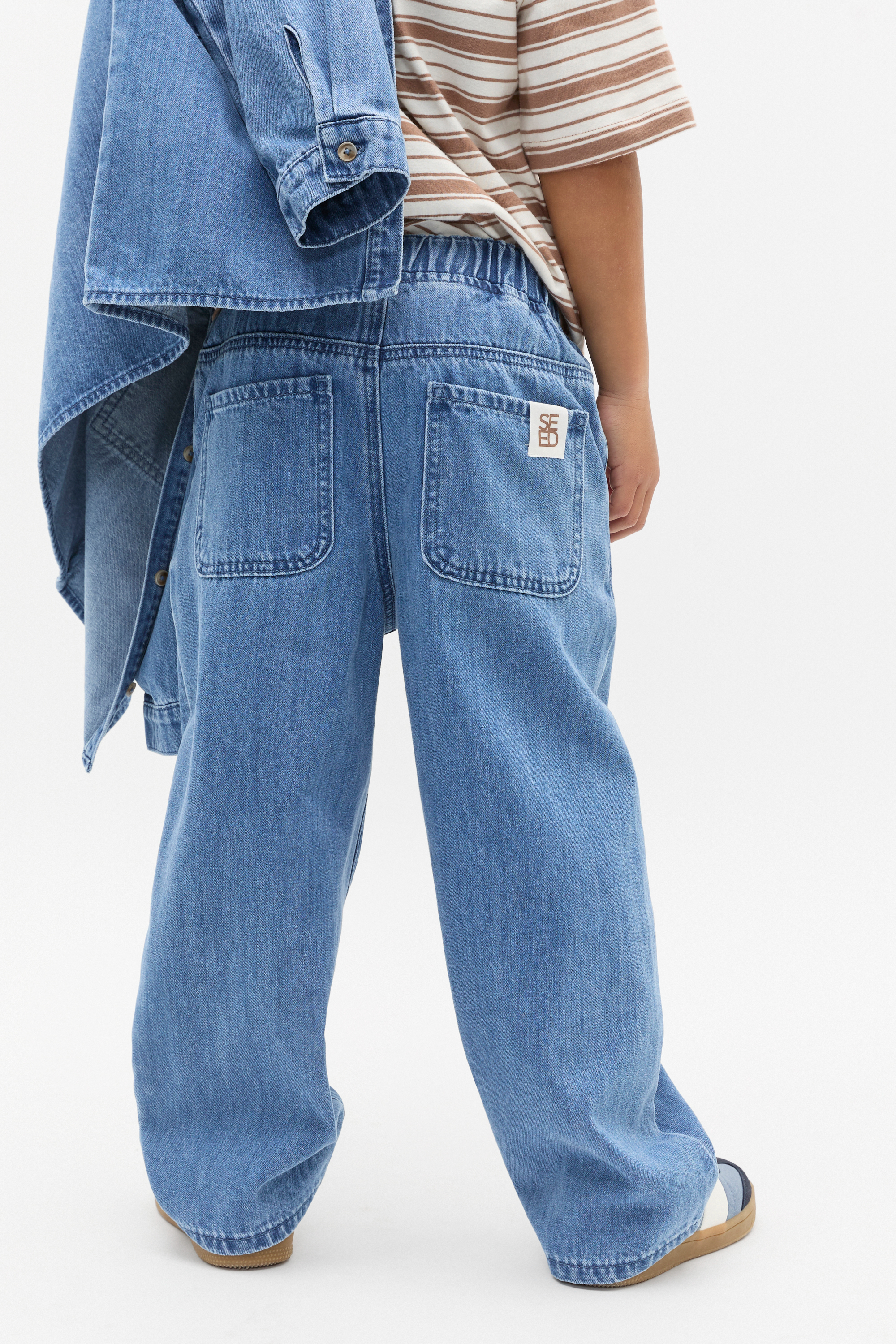 Practical and cool, these jeans are ready to style with all his favourite tees and tops. Crafted in premium cotton, they're a relaxed straight leg design and feature an elasticated waistband and pockets.