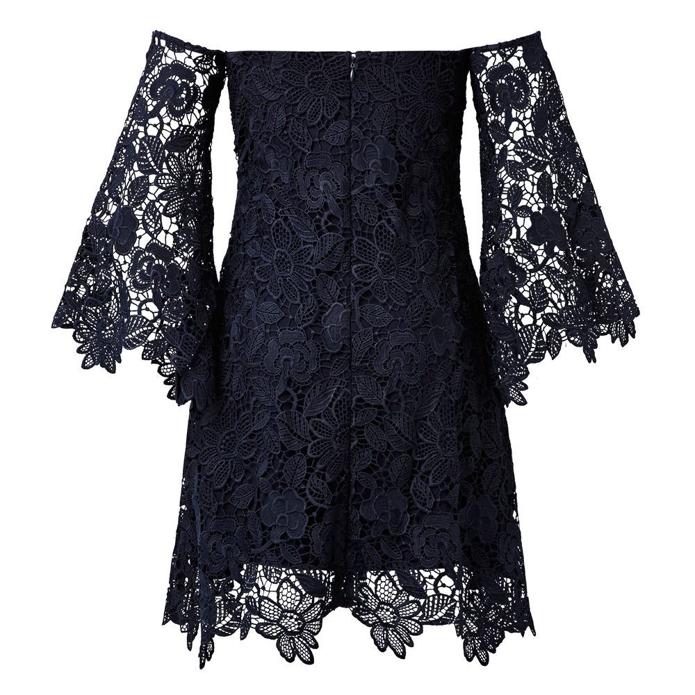 Embrace a chic style with this lace dress. Featuring a sweetheart off the shoulder neckline, this neat-fitting style is completed with flared sleeves and intricate lace detail. Made from polyester lace, it's available in sizes 6 to 14.