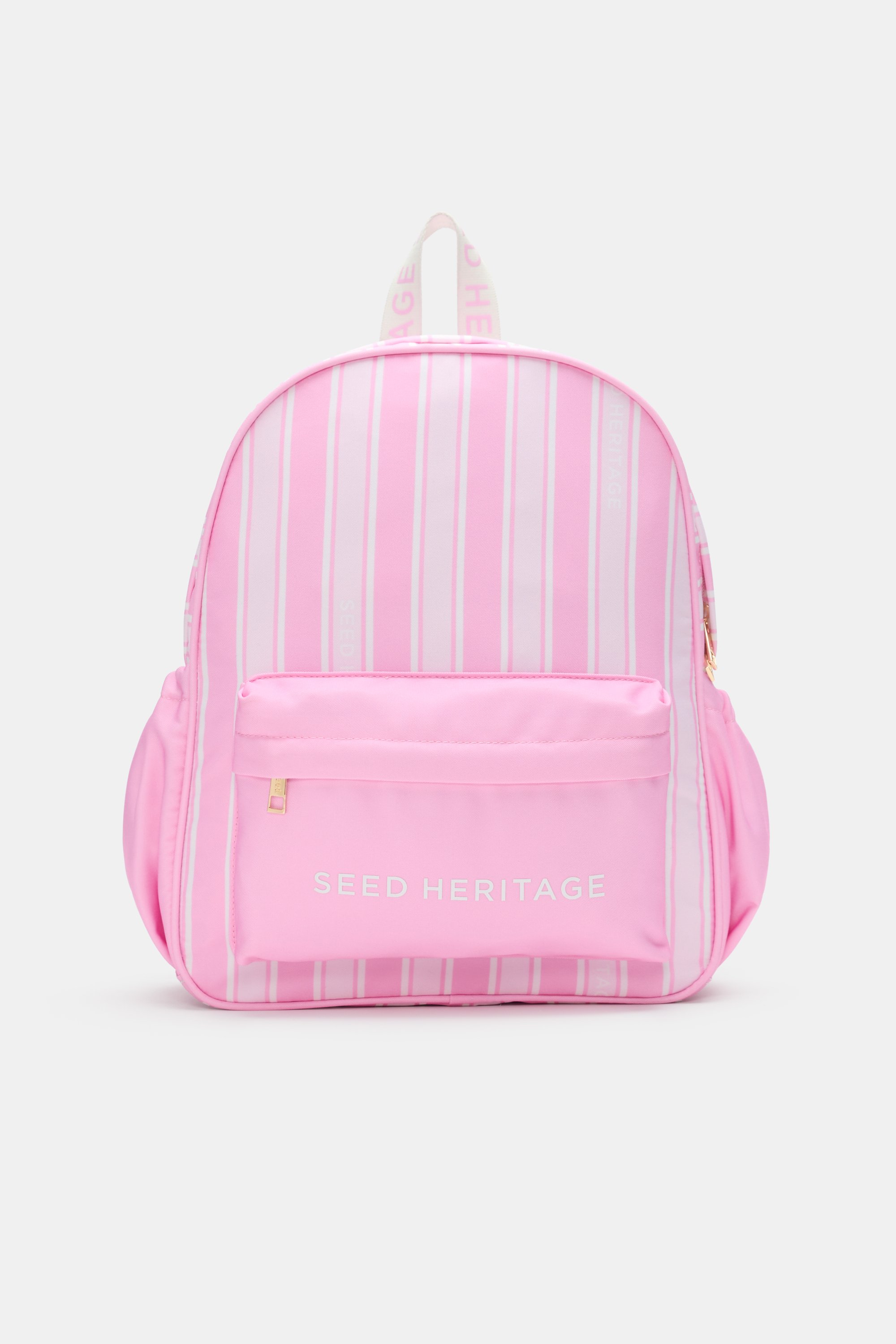 As fun as it is practical, this backpack is a classic design perfect for kindergarten, school, holidays or weekend playdates. It features a stripe design with a Seed Heritage logo detail, a top zip closure, elastic side pockets and adjustable shoulder straps. Complete their set with the matching weekender and cosmetics bag.
