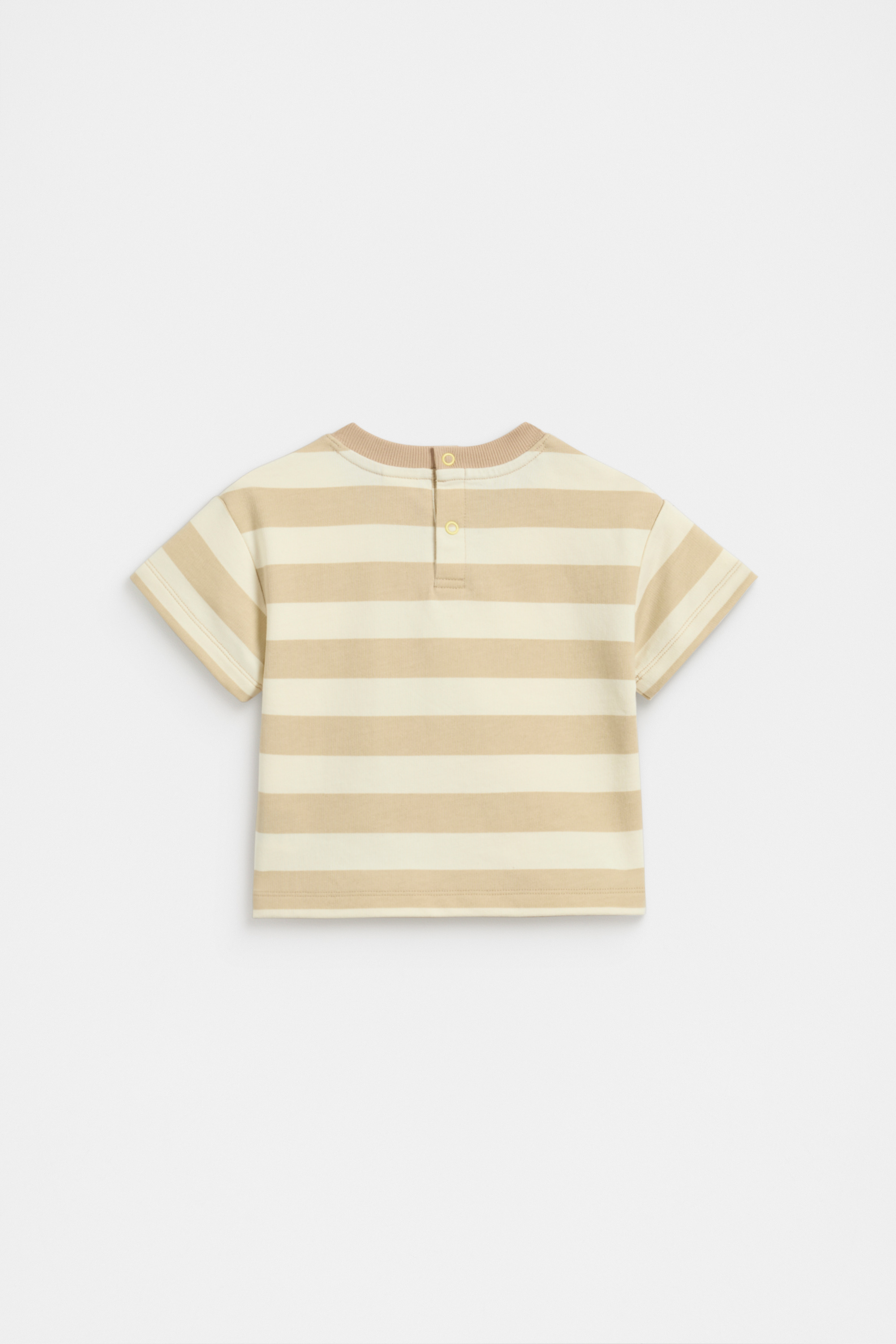 So cute and comfy, this little tee is ready to wear on repeat. Crafted in premium cotton with a little stretch at the neckline, it features a stripe pattern, a chenille patch design, short sleeves and snaps at the back of the neck for easy changes.
