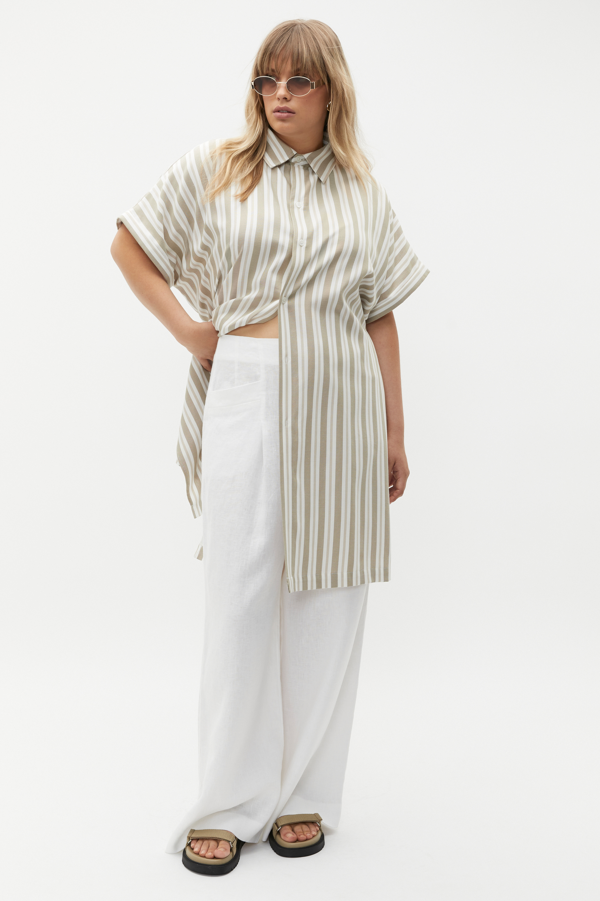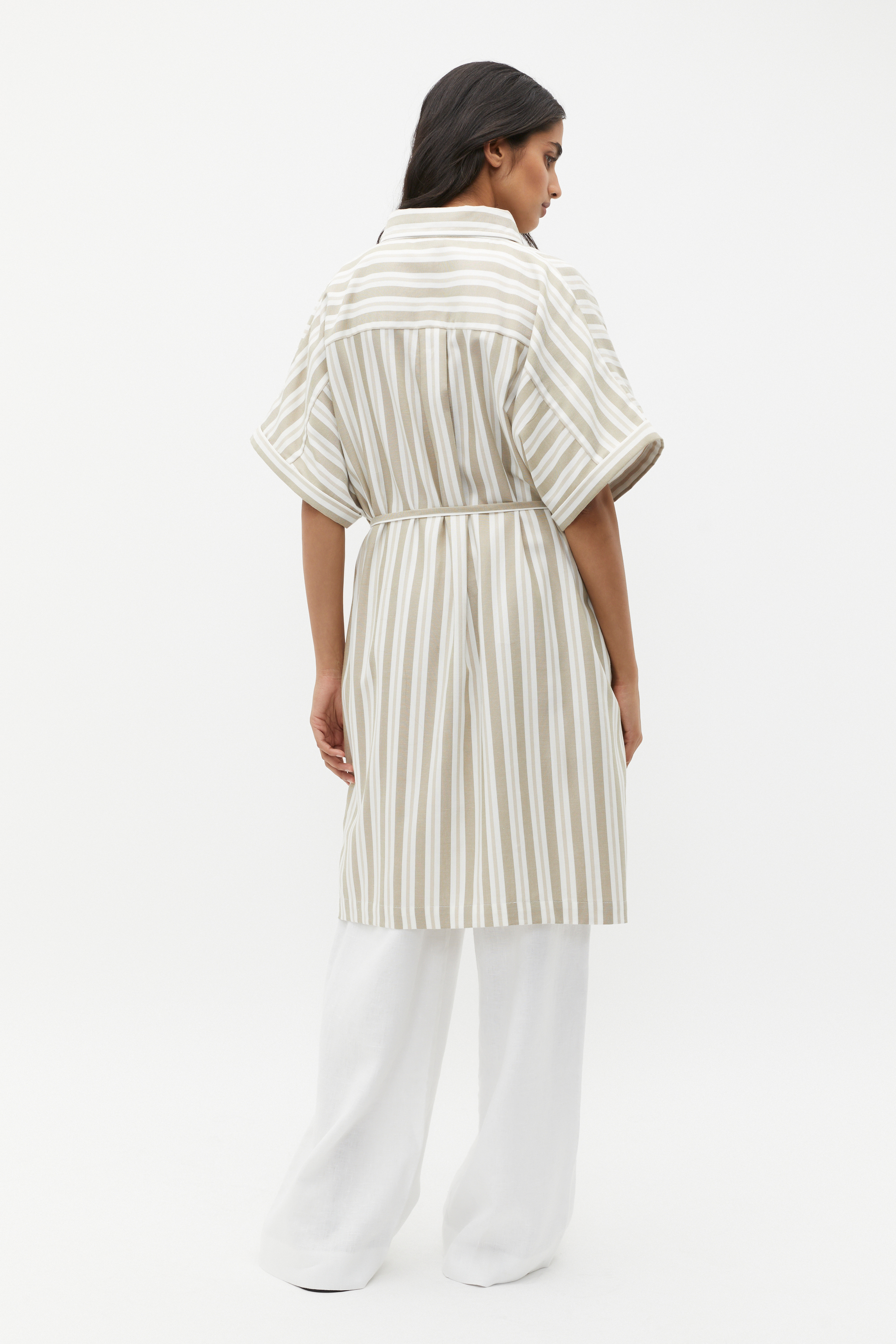 Crafted in premium cotton and featuring a timeless stripe design, this poncho is the perfect addition to your holiday style. Designed as a cover to sit over your swimwear, this style is at home at the beach or by the pool or can be dressed up with linen pants or heels for your next outing. It features a collar and a button front and a loose fitting poncho shape.