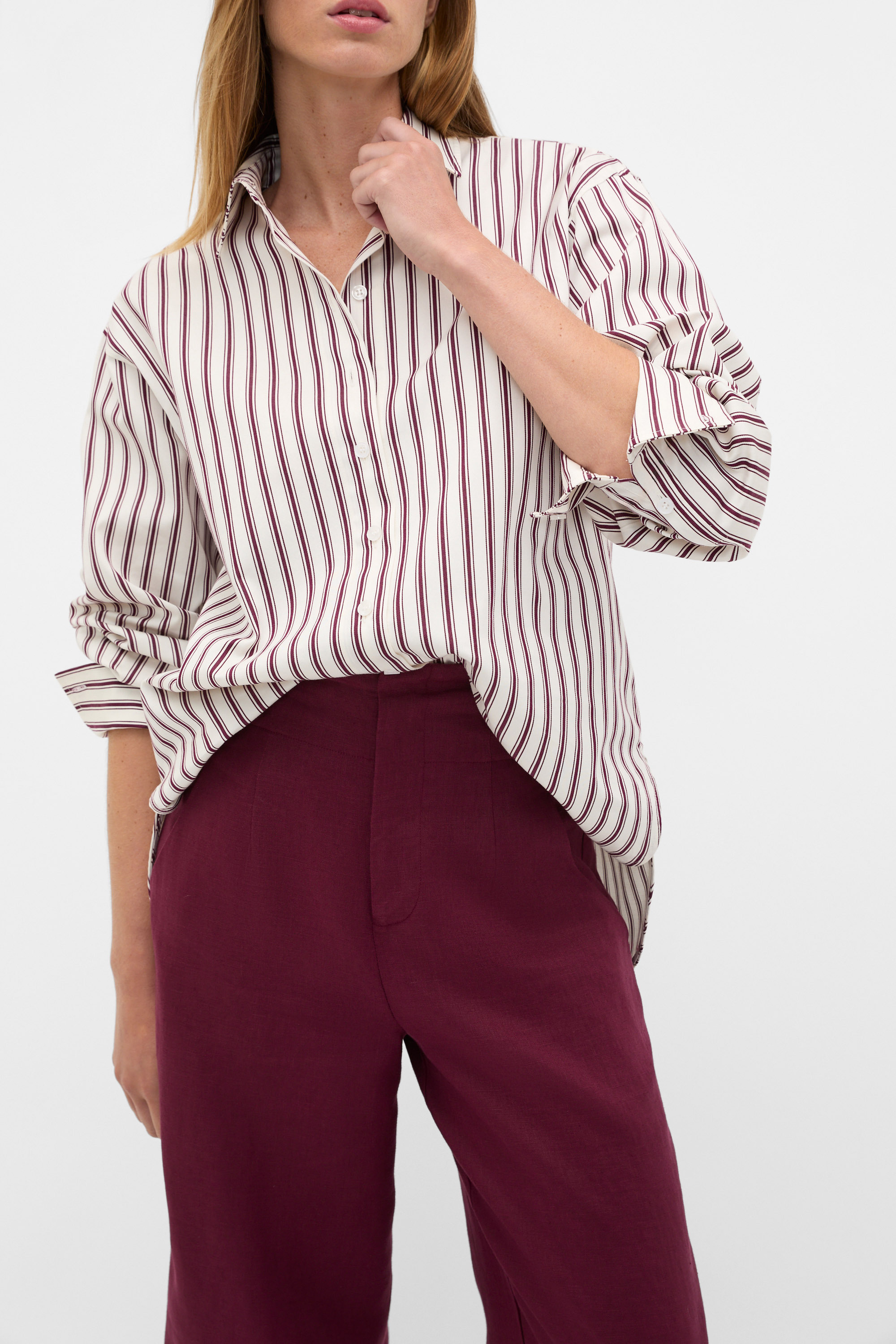 Stripe Cotton Oversized Shirt  Plum Red Stripe  hi-res Stripe Cotton Oversized Shirt  Plum Red Stripe  hi-res Stripe Cotton Oversized Shirt  Plum Red Stripe  hi-res Stripe Cotton Oversized Shirt  Plum Red Stripe  hi-res