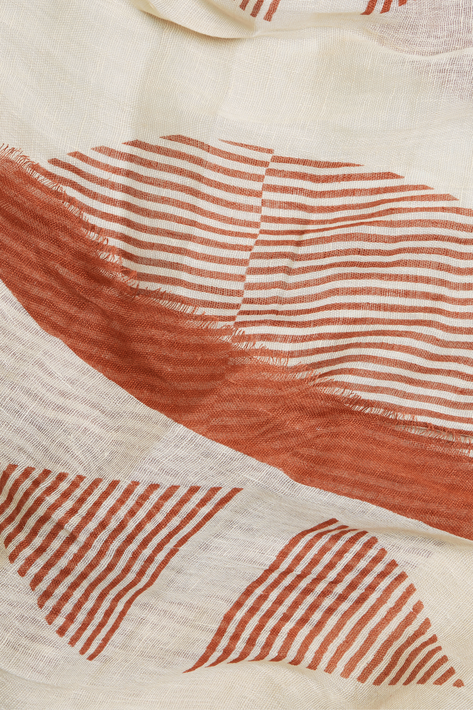 Designed in a rich Moroccan Red colourway, this Stripe Geo Scarf is made for lightweight layering this season.