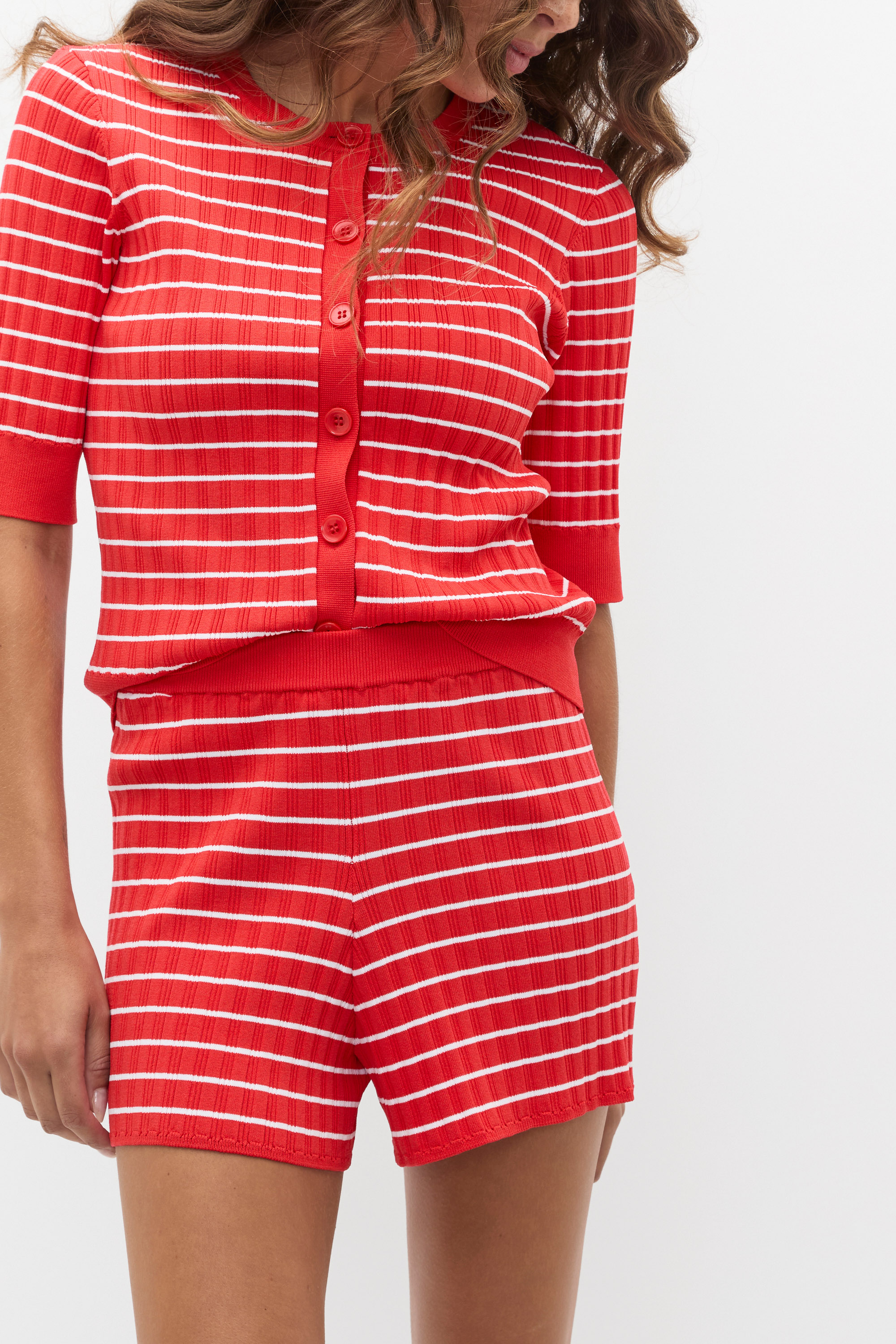 Chic and casual, these shorts are a comfortable option for your summer wardrobe. In a lightweight knit, they feature an elasticated waistband, a stripe design and a neat fit through the leg. Style with the matching cardigan for a chic head-to-toe look.