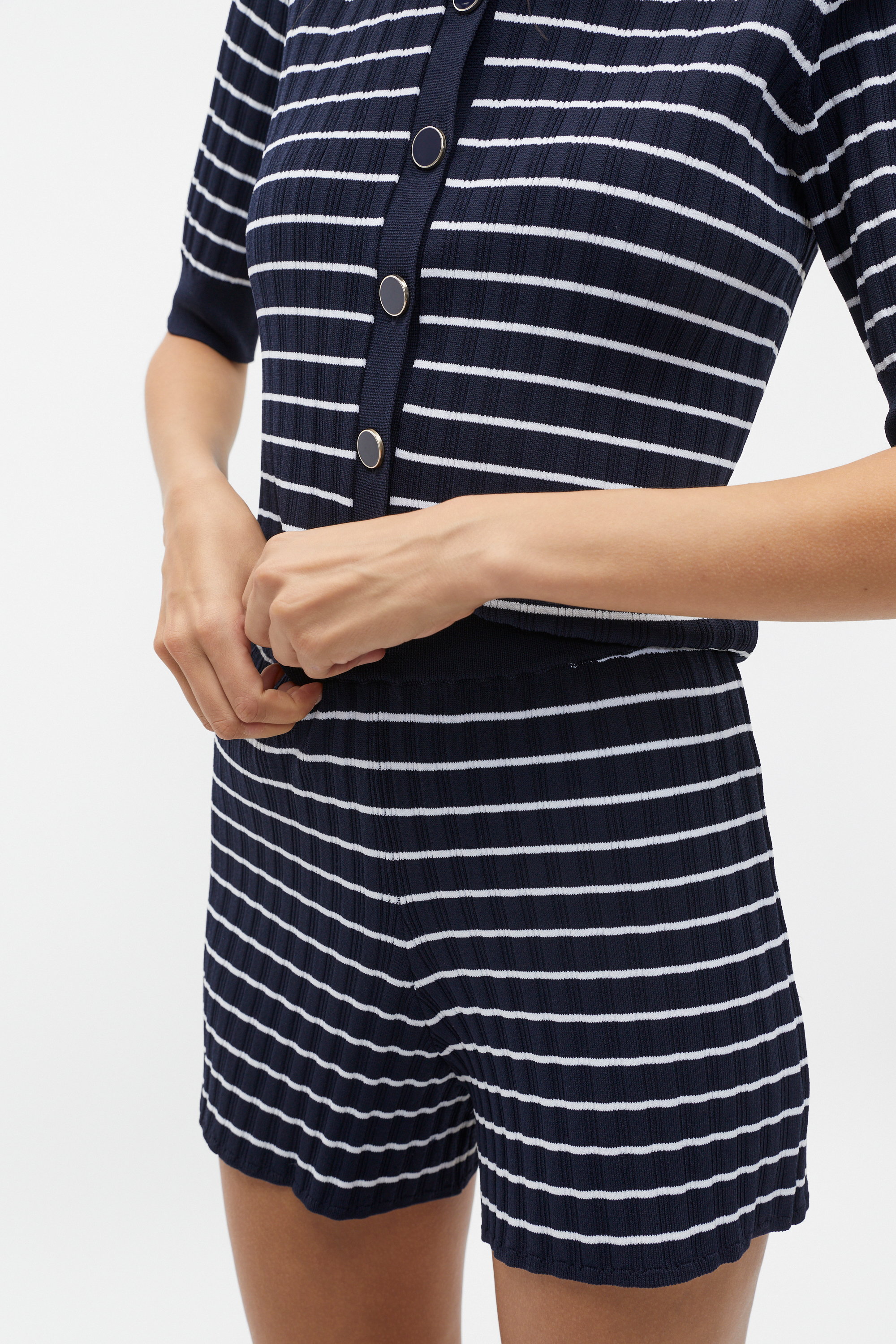Chic and casual, these shorts are a comfortable option for your summer wardrobe. In a lightweight knit, they feature an elasticated waistband, a stripe design and a neat fit through the leg. Style with the matching cardigan for a chic head-to-toe look.