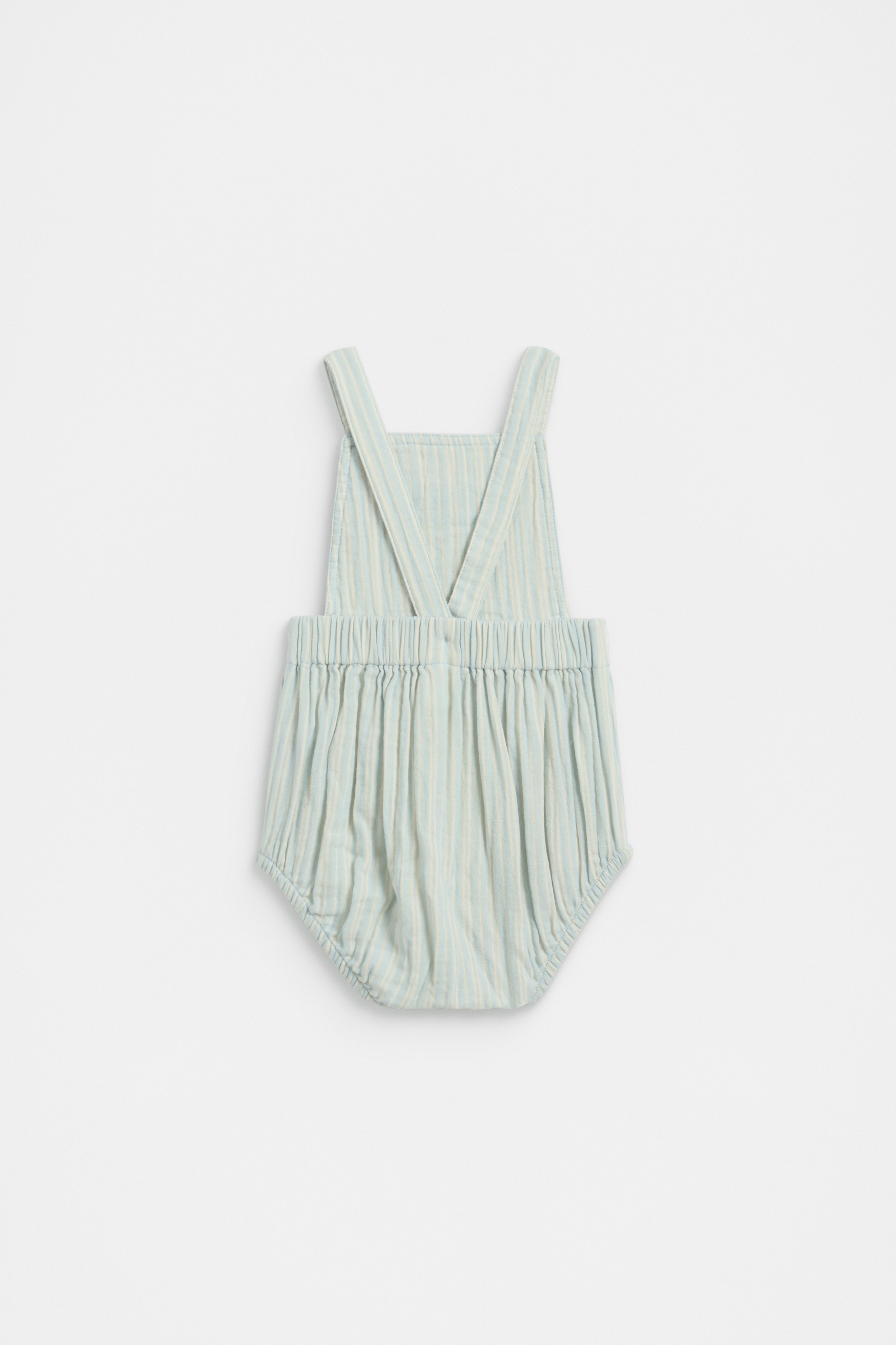 This adorable romper is comfortably lightweight for the summer and guarantees head-to-toe sweetness. Crafted in premium cotton, it features adjustable straps that cross over at the back, an elasticated band at the waist, elasticated leg openings, and secures with snaps at the gusset. It also features a stripe design.