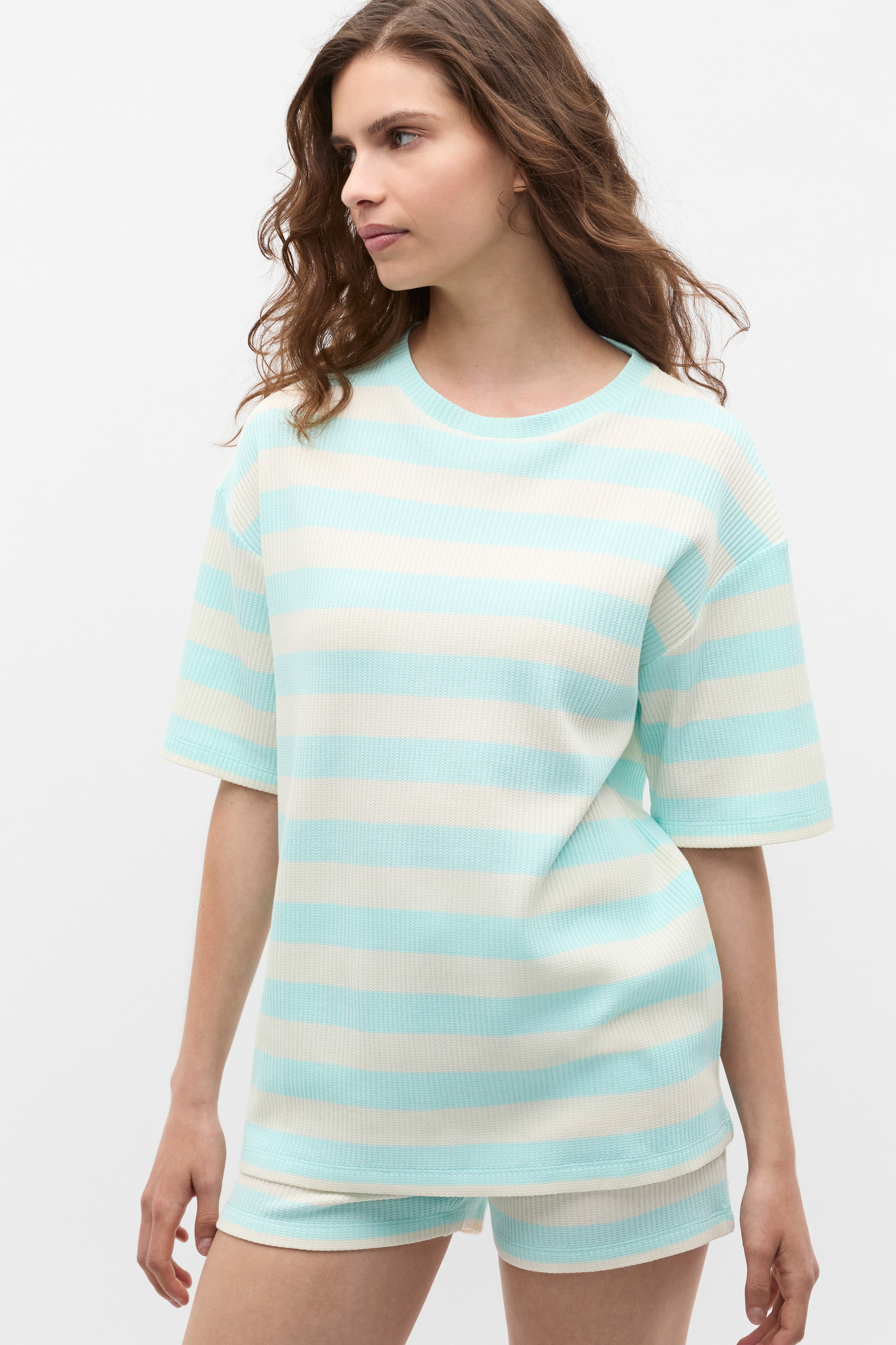 So soft and comfortable, this pyjama set includes a t-shirt and shorts finished in a soft knit with a little stretch. Your new favourite pair, they feature short sleeves, a comfortable elasticated waistband, and a relaxed fit.
