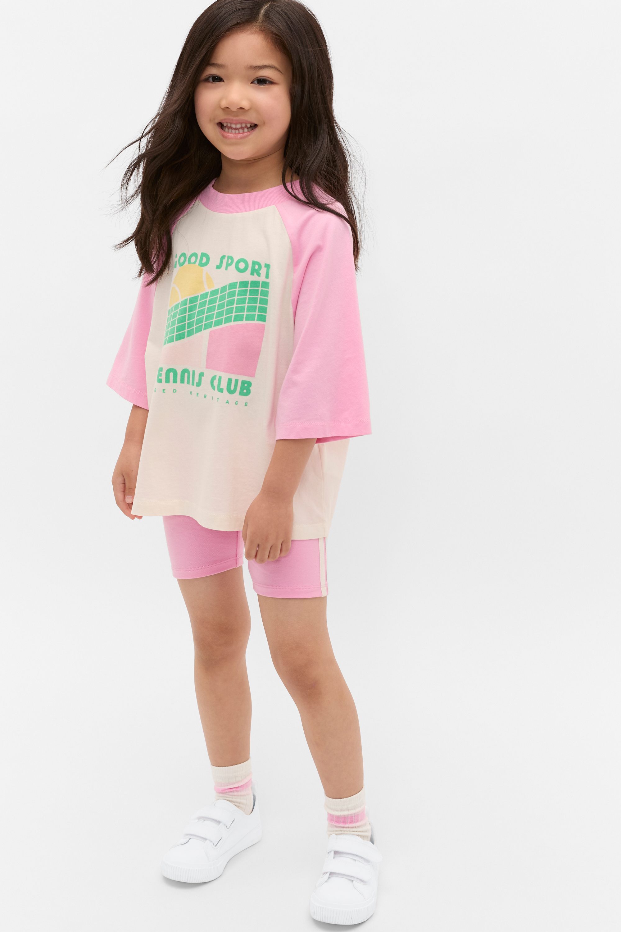 Refresh her little wardrobe with these comfortable bike shorts. Crafted in a premium cotton blend with the right amount of stretch, they feature an elasticated waistband with logo webbing and a stripe design down the leg.