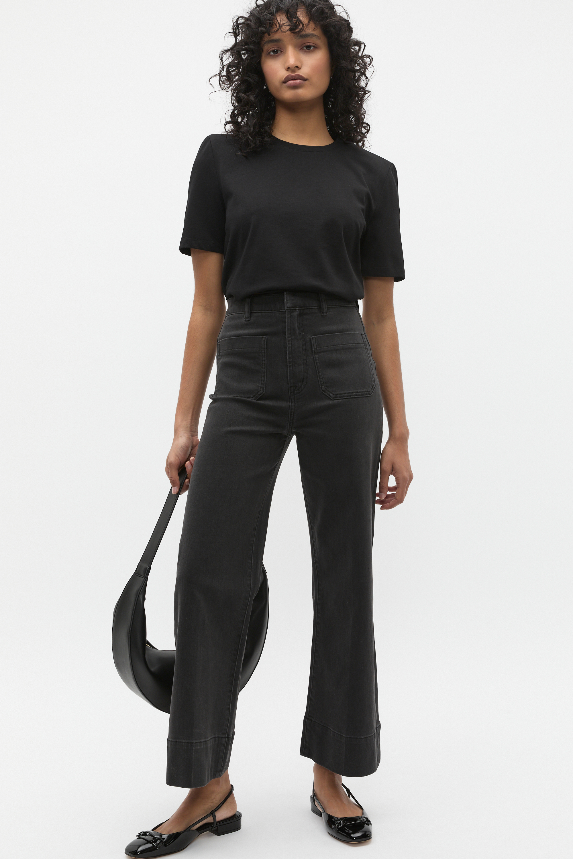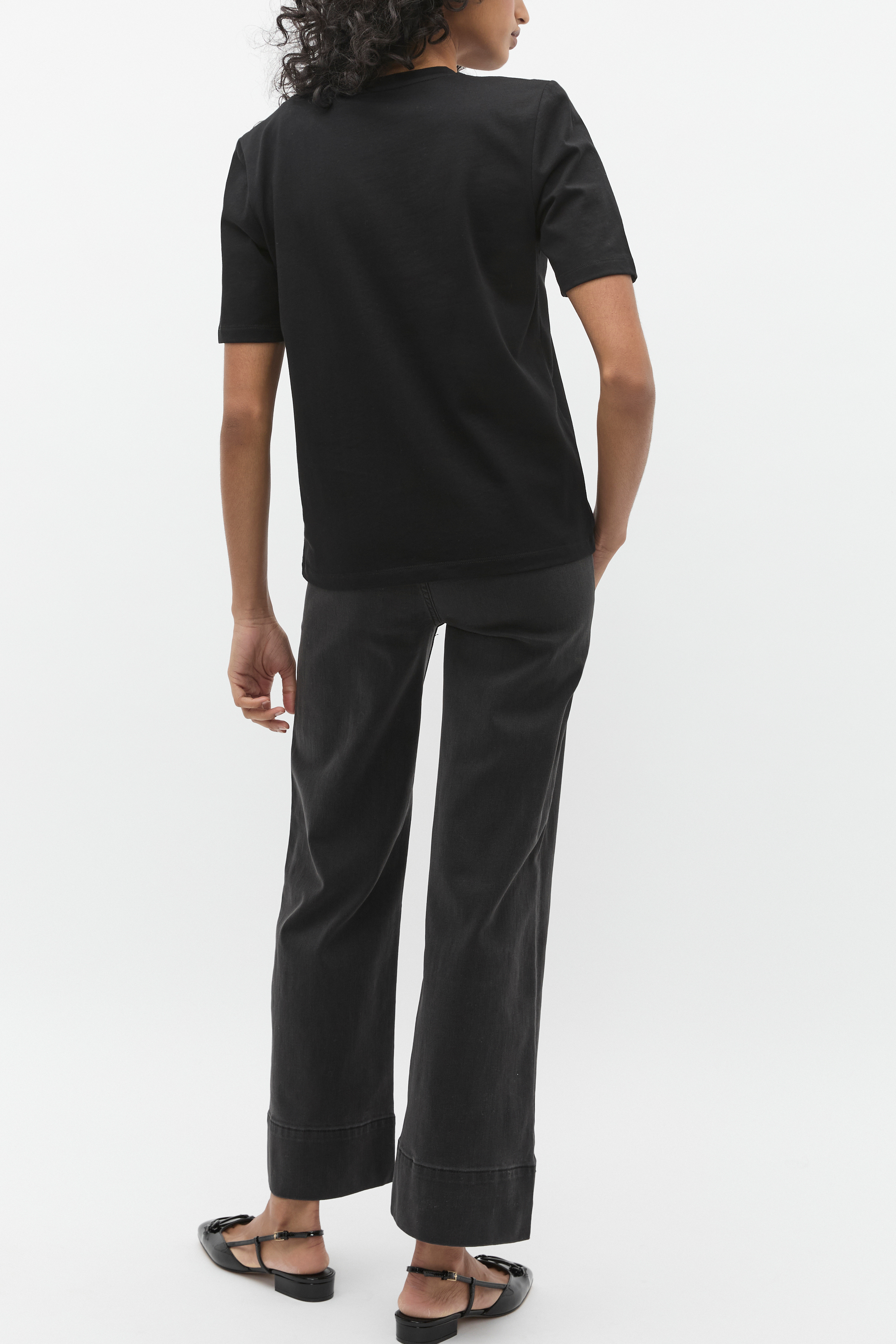 Simple and chic, this tee is set to become your new wardrobe go-to. Crafted in premium cotton, it has a classic boxy shape, featuring a round neck, short sleeves and is detailed with shoulder pads for a structured look. By choosing our cotton products you're supporting our investment in Better Cotton's mission. This product was sourced via a system of mass balance and therefore may not contain Better Cotton.