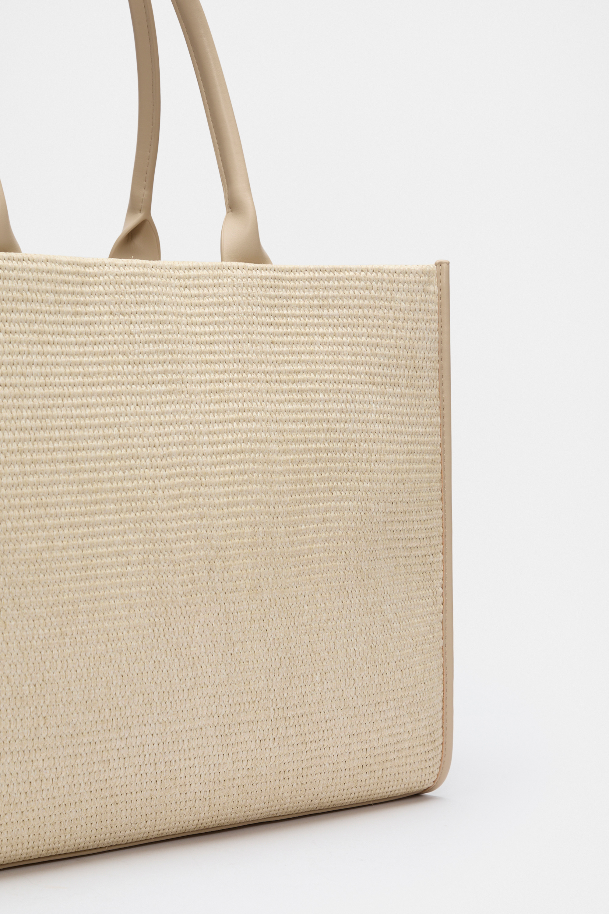 A stylish addition to your everyday dressing, this raffia tote features a structured design. It's fully lined and has a woven outer, a front pocket and an internal zip pocket.